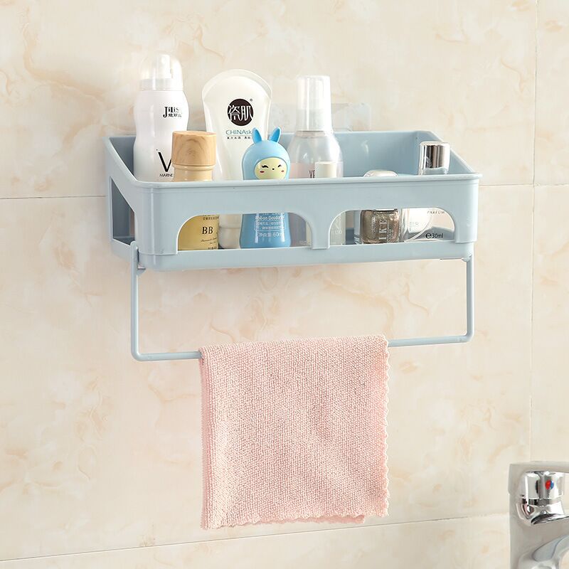 无痕加厚大号塑料置物筐 收纳篮带杆毛巾架浴室置物架整理架