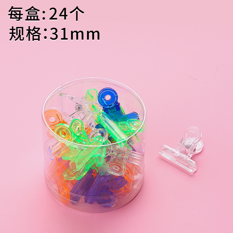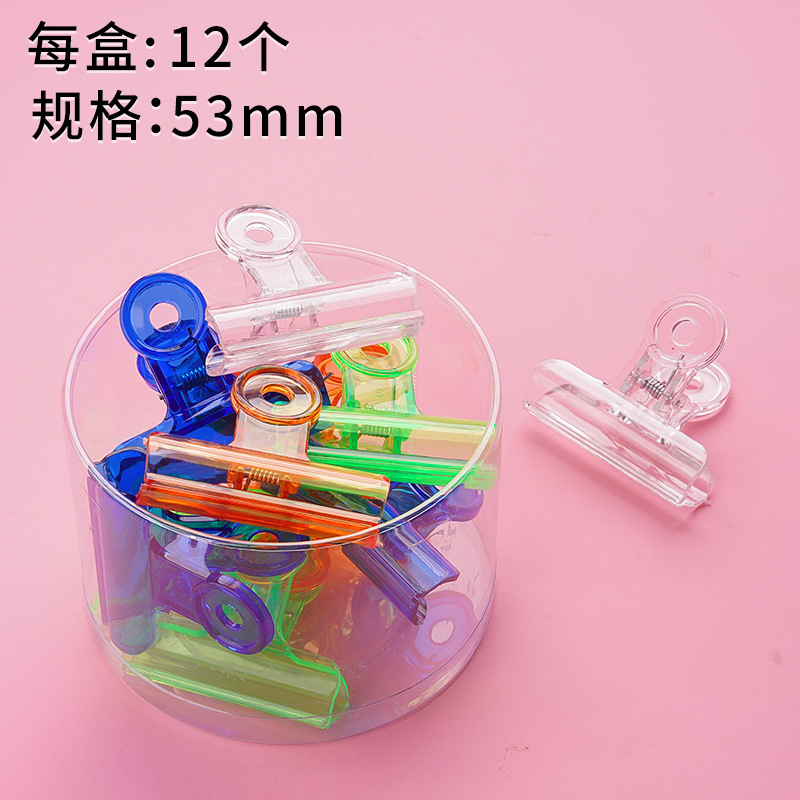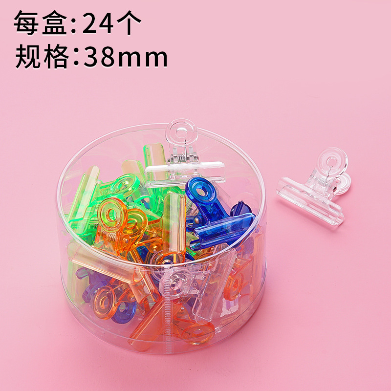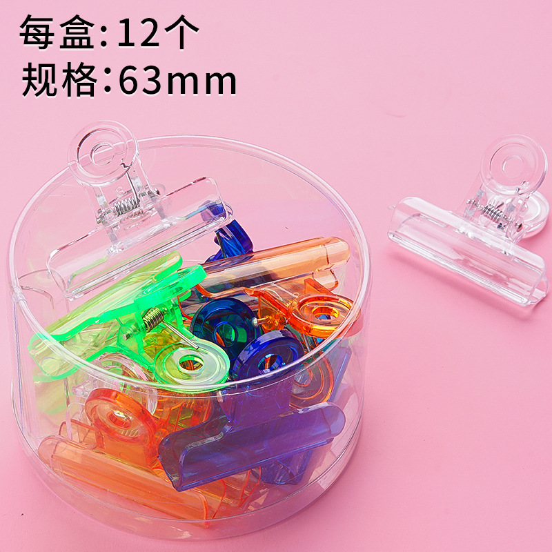 圆形票夹彩色透明塑料小号夹子可爱长尾夹固定文件书本夹大号桶装