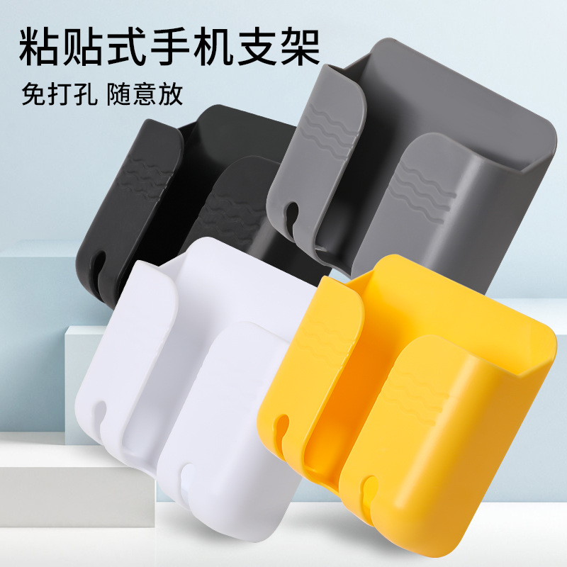 免钉粘贴手机支架带钩收纳盒家居遥控器壁挂贴懒人墙壁插头收纳架
