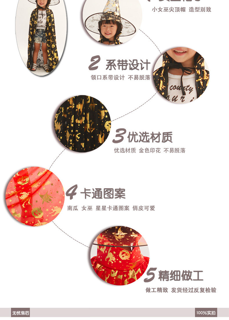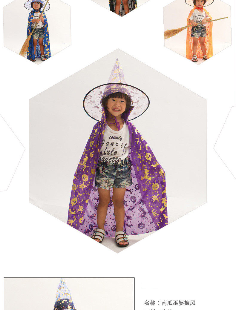 万圣节服装儿童披风cosplay镀金巫婆披风斗篷死神服装巫师披风