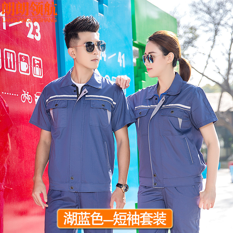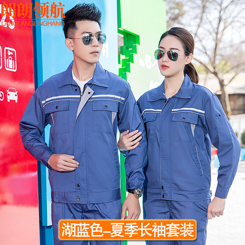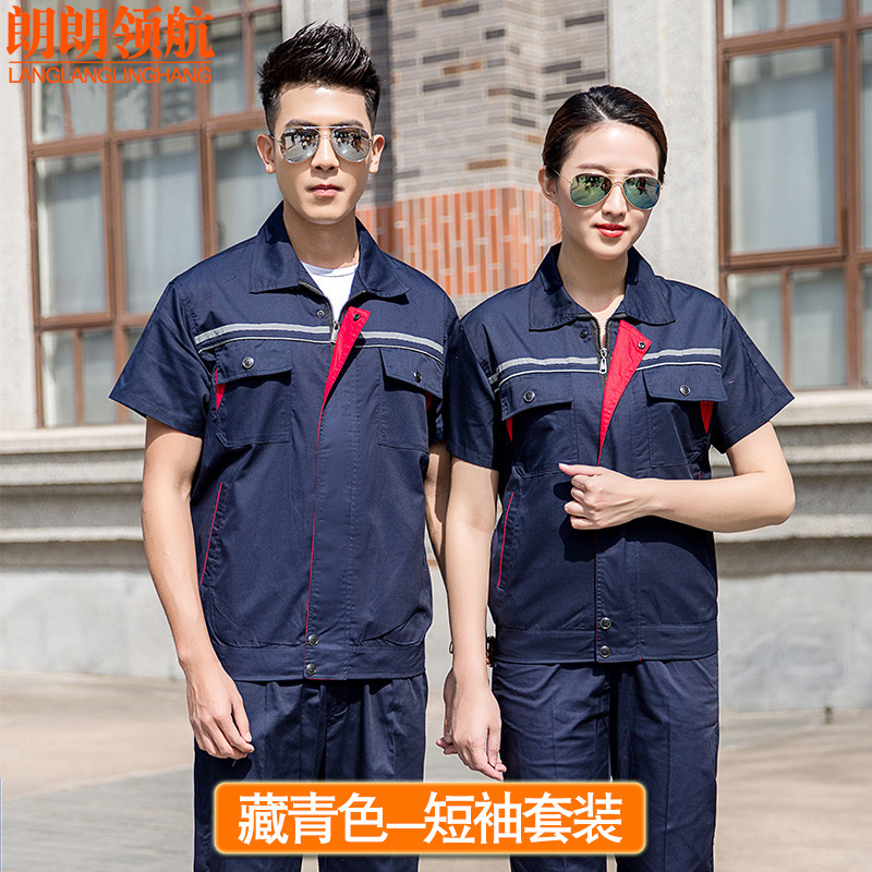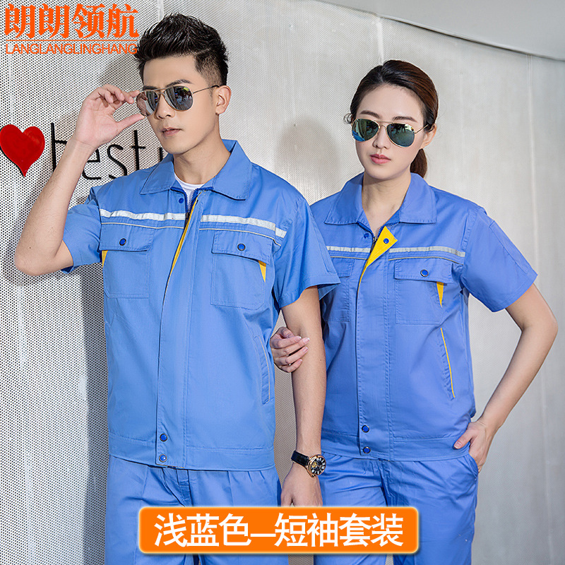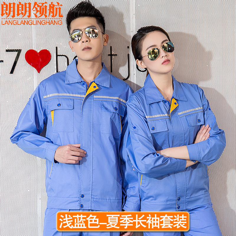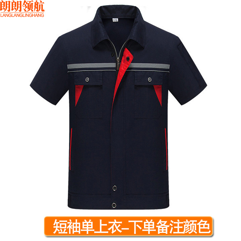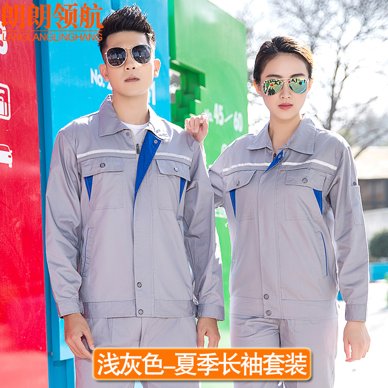 薄款长袖工程服套装透气吸汗反光条劳保服汽修定制夏季半袖工作服