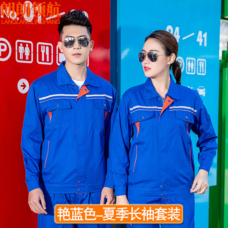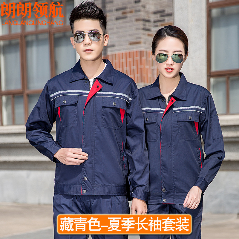 薄款长袖工程服套装透气吸汗反光条劳保服汽修教练定制夏季工作服