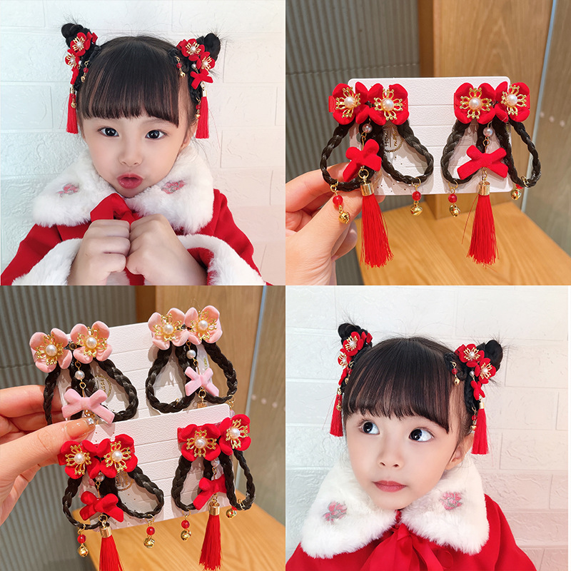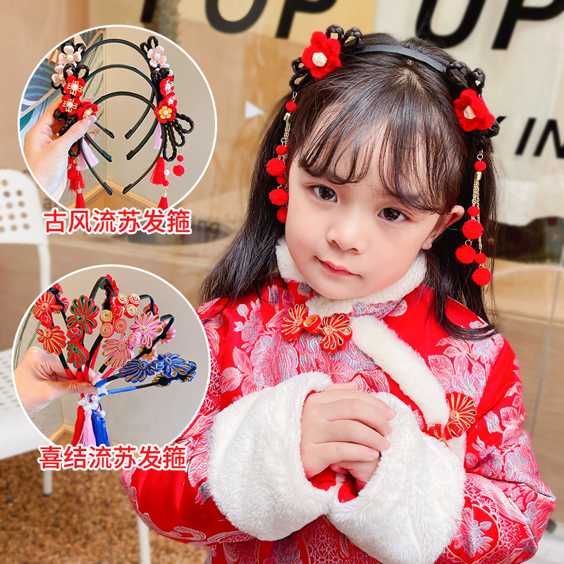 新款儿童汉服头饰 中国风貂毛流苏古风发夹女童宝宝公主配饰发卡