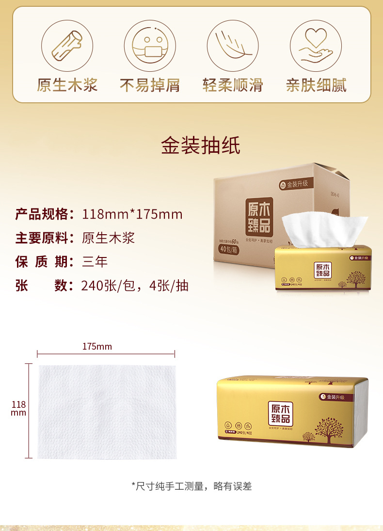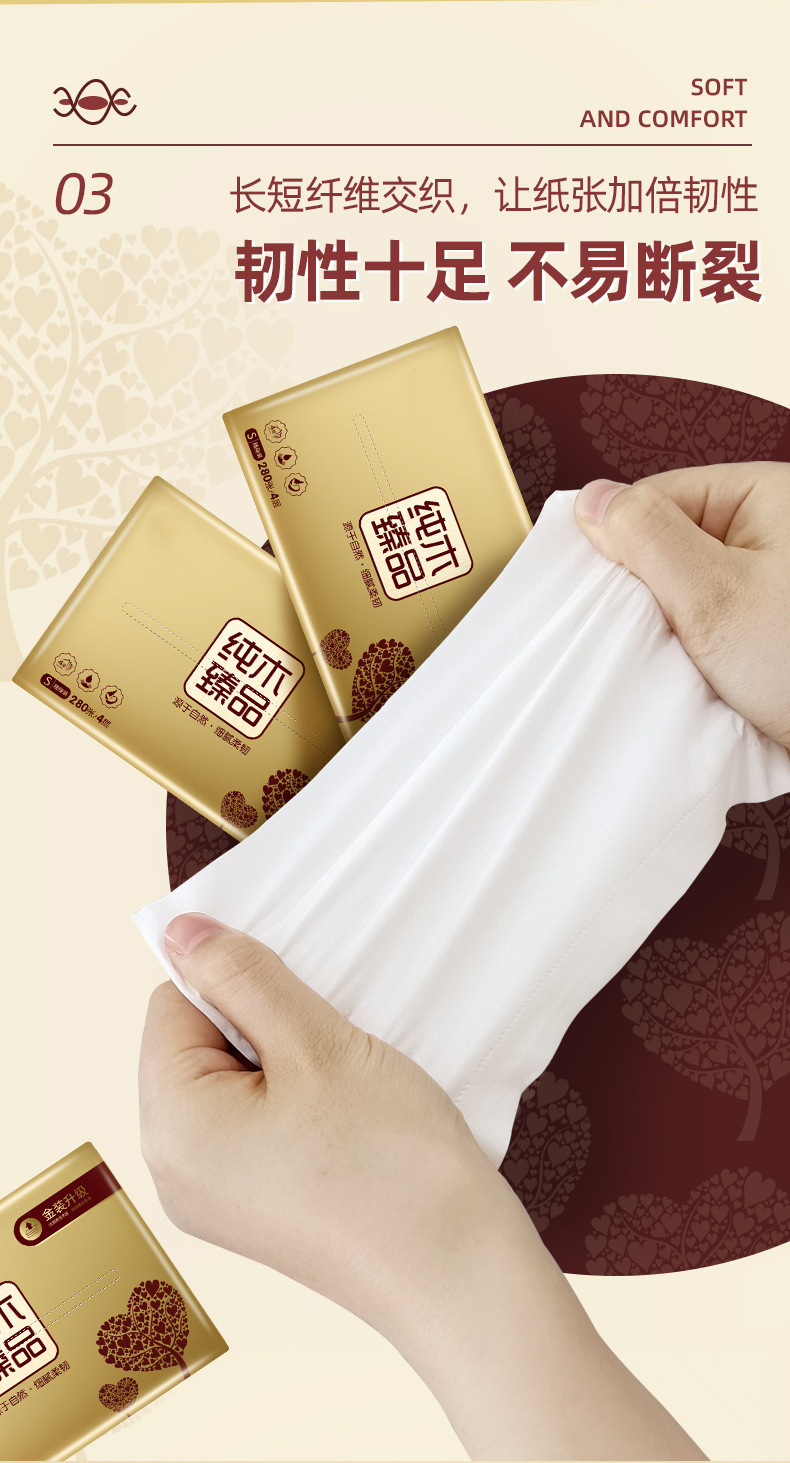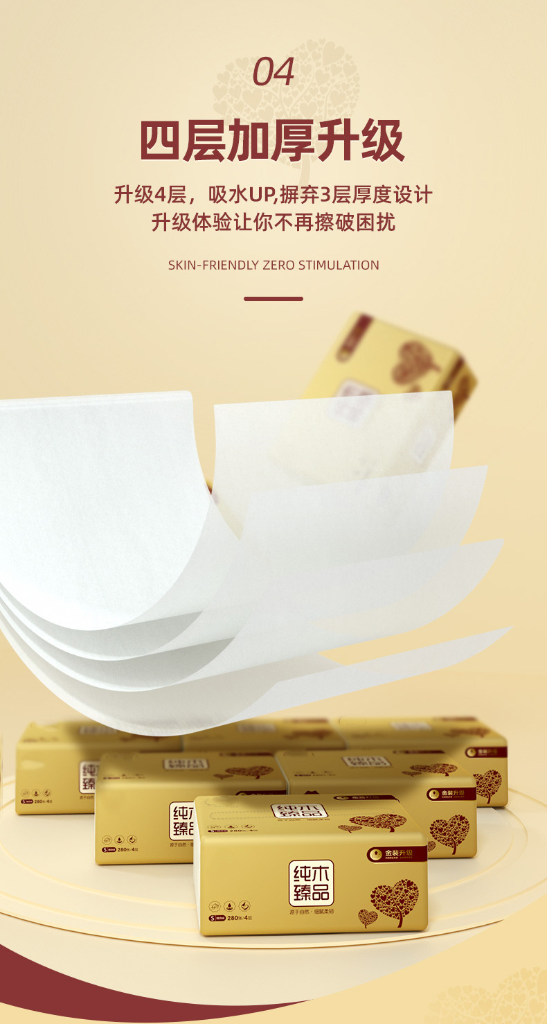 抽纸 原木纸巾批发4层压花餐巾纸家用面巾纸卫生纸母婴适用