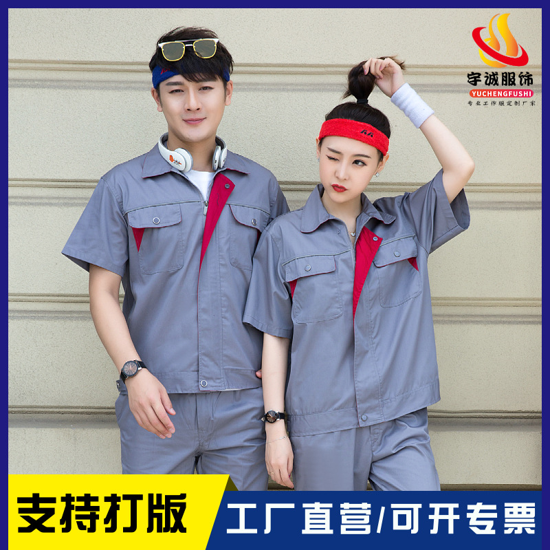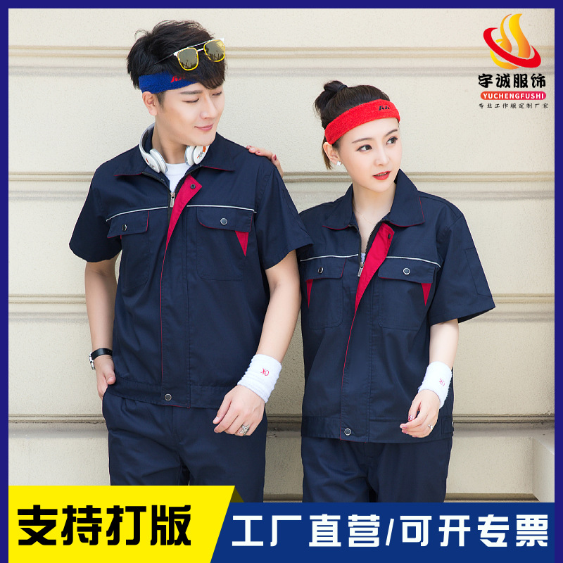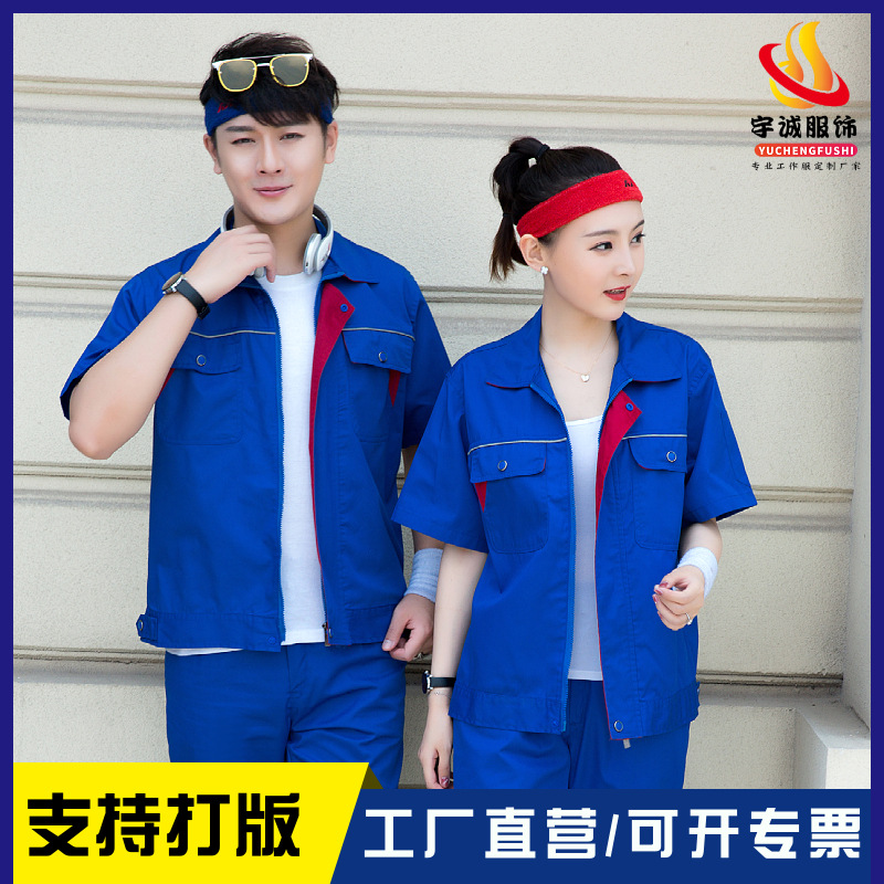 夏季工作服半袖薄款短袖工装套装吸汗透气厂服车间汽修劳保服印字