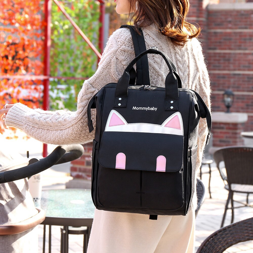 新款妈咪包双肩可爱猫咪大容量夹口母婴包奶瓶保温包