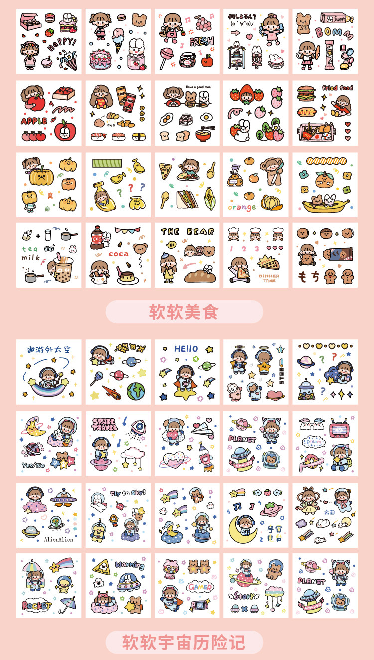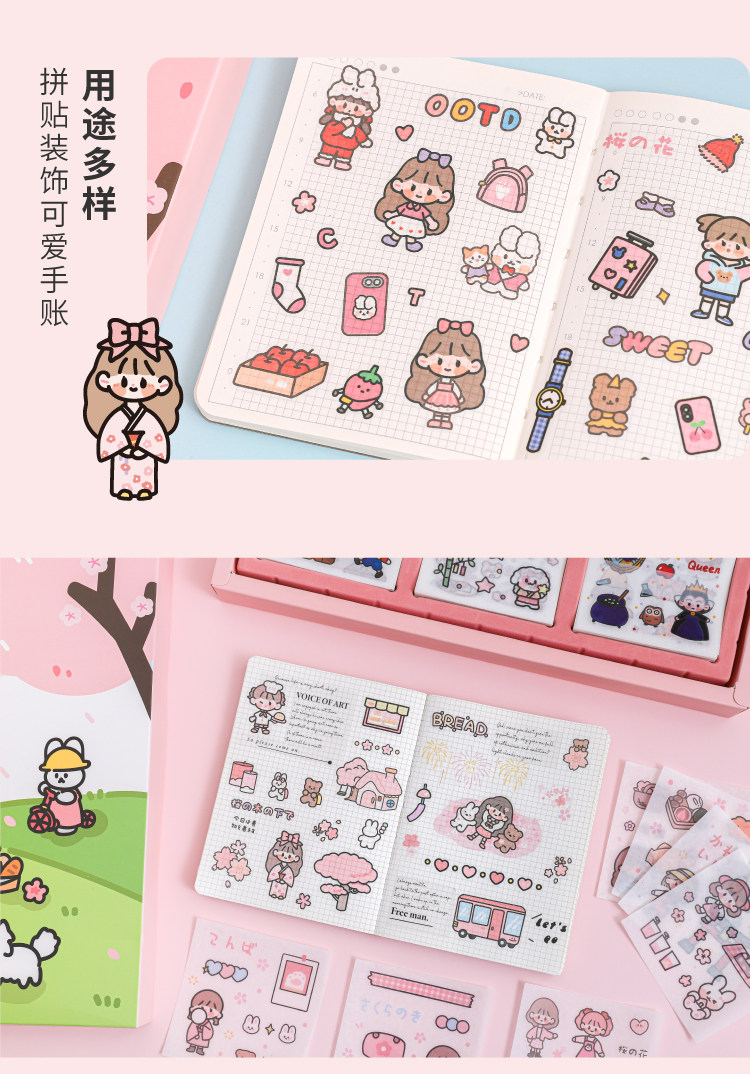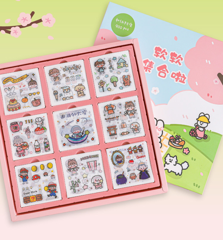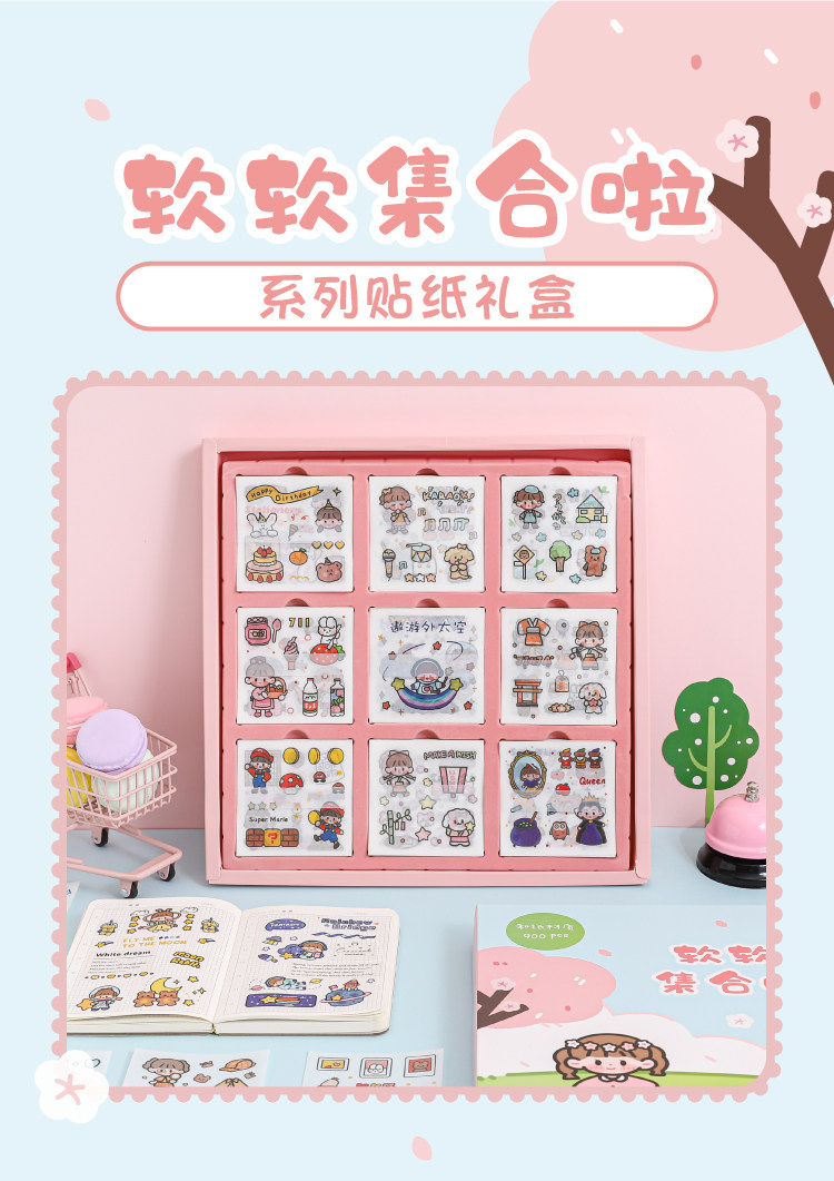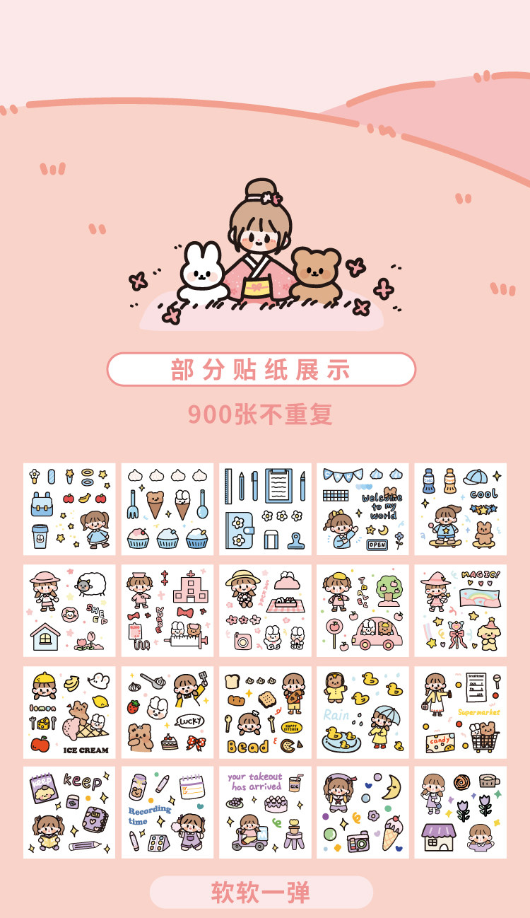 手账本贴纸套装贴画可爱少女ins风手杖素材900张元气满满防水无痕
