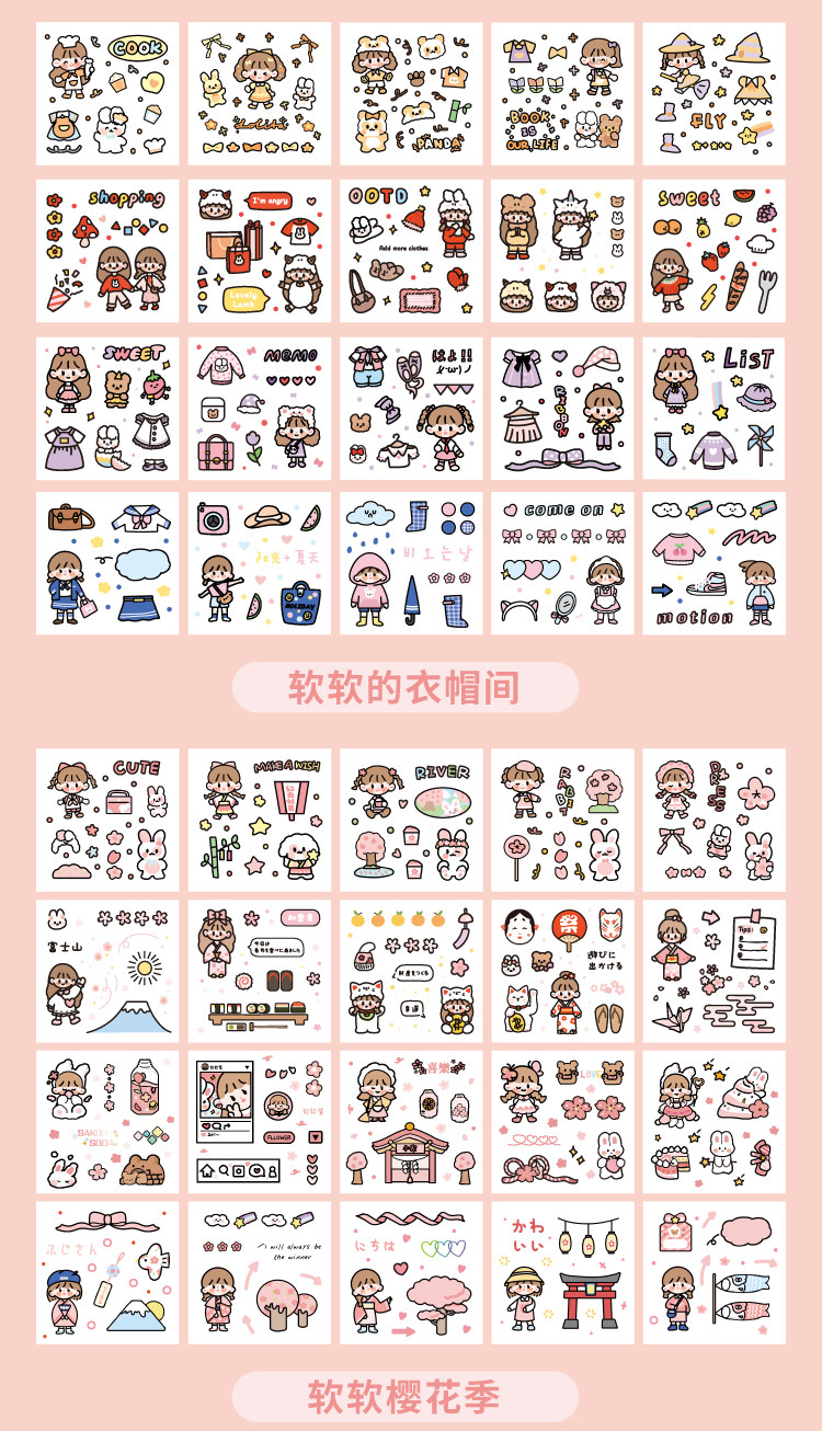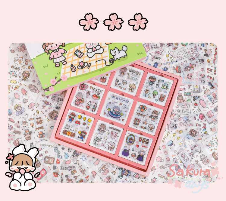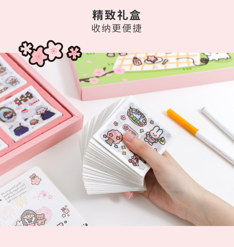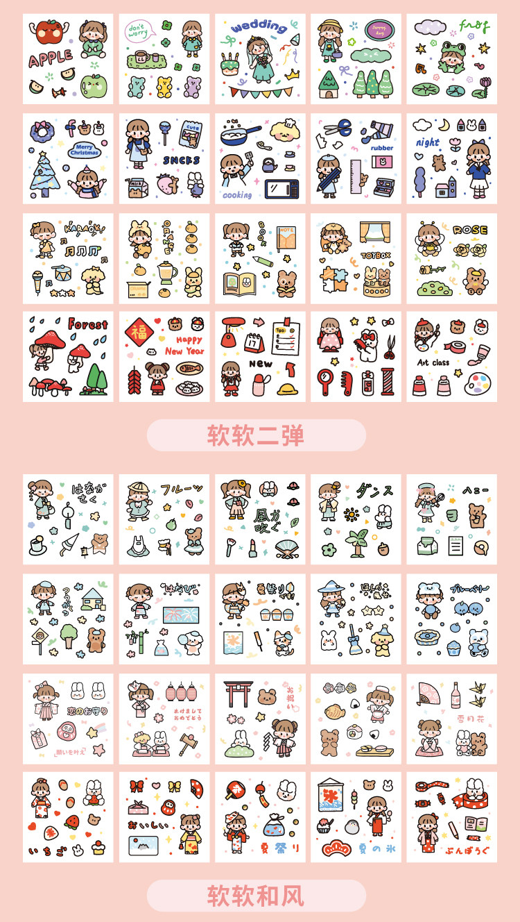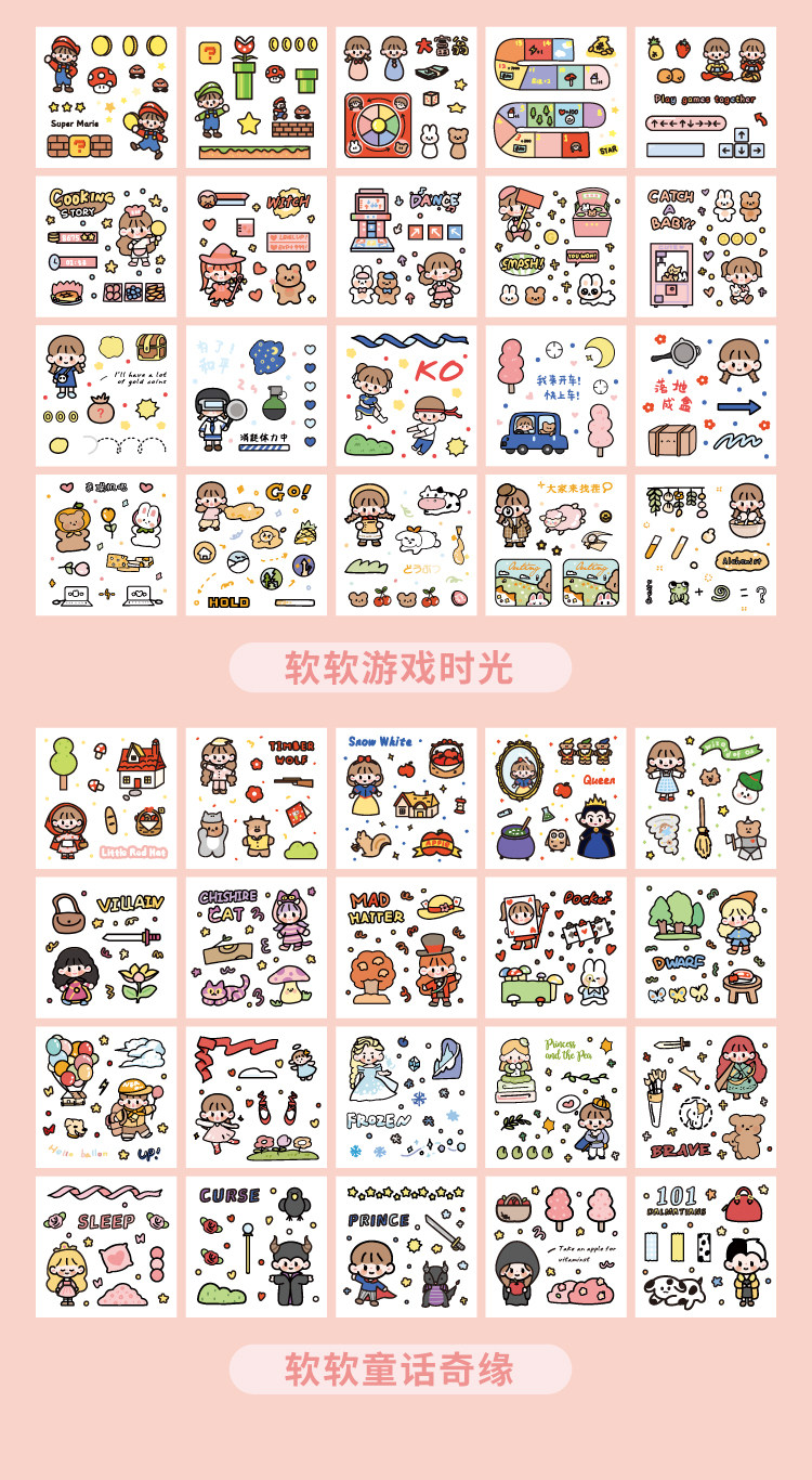 手账本贴纸套装贴画可爱少女ins风手杖素材900张元气满满防水无痕