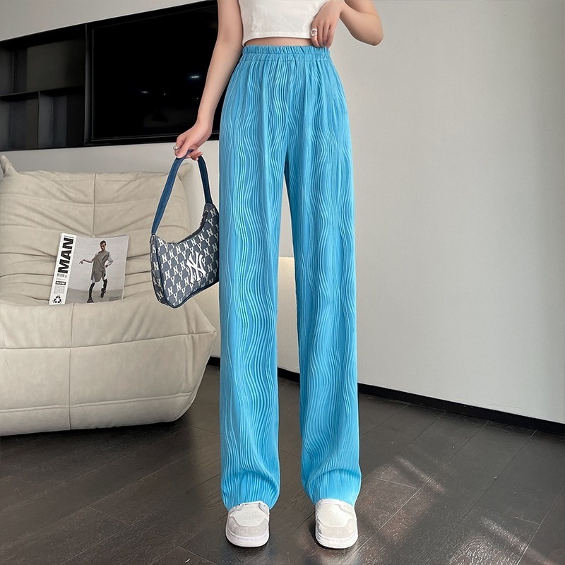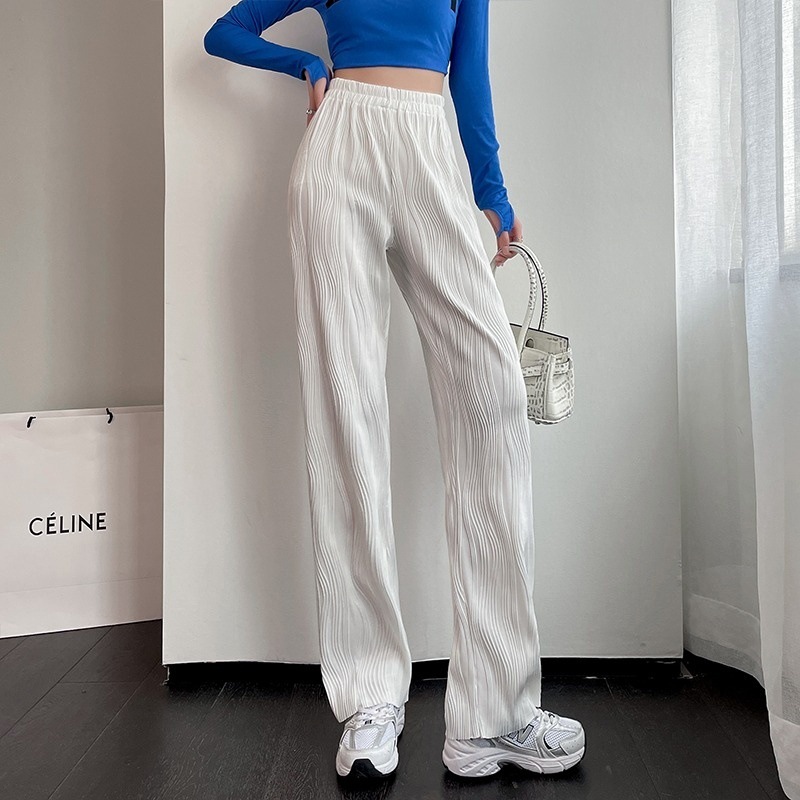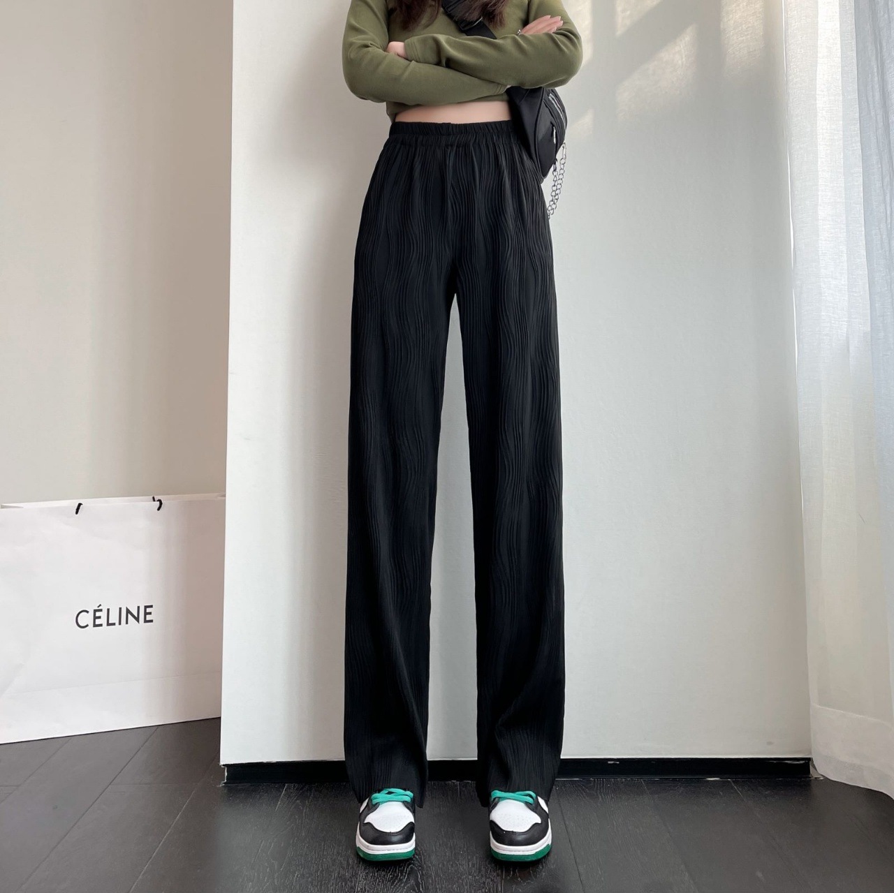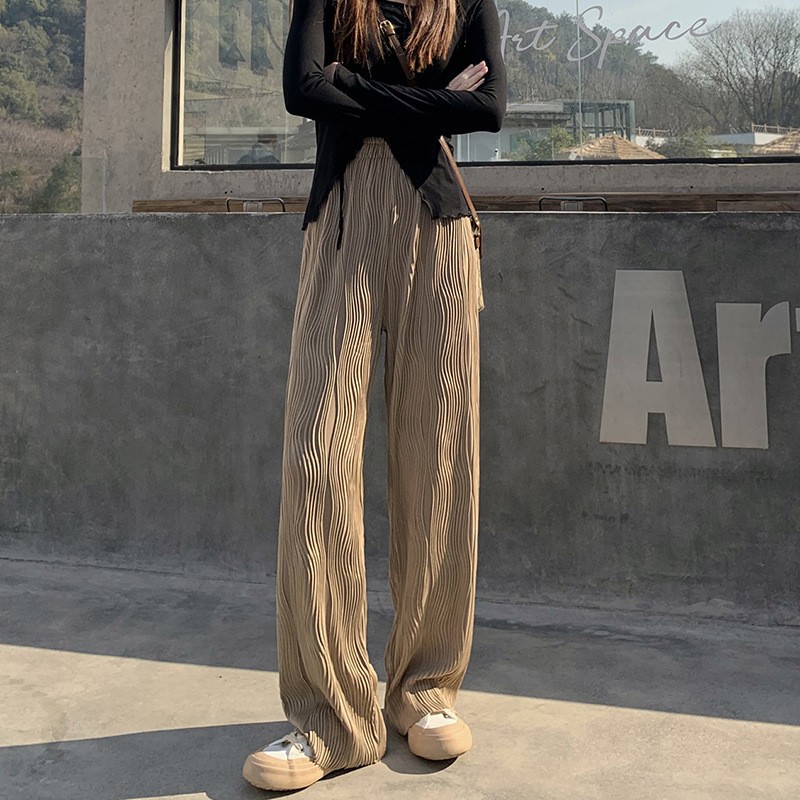 波纹设计初恋水光裤直筒阔腿裤女春季新款韩版垂感休闲拖地休闲裤