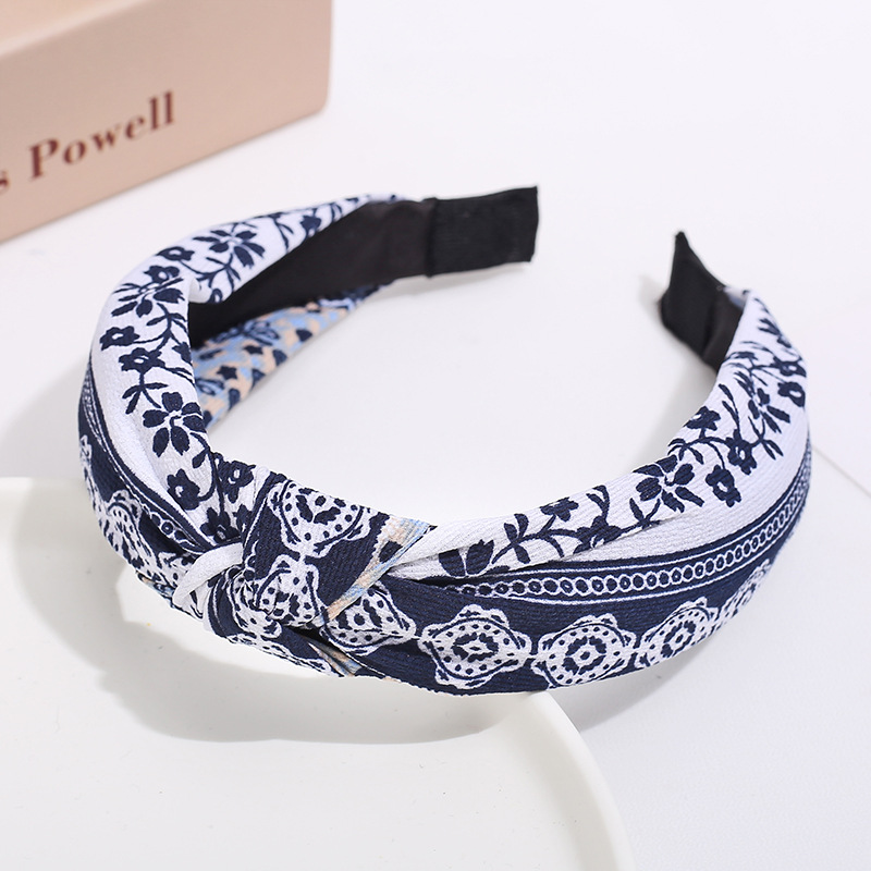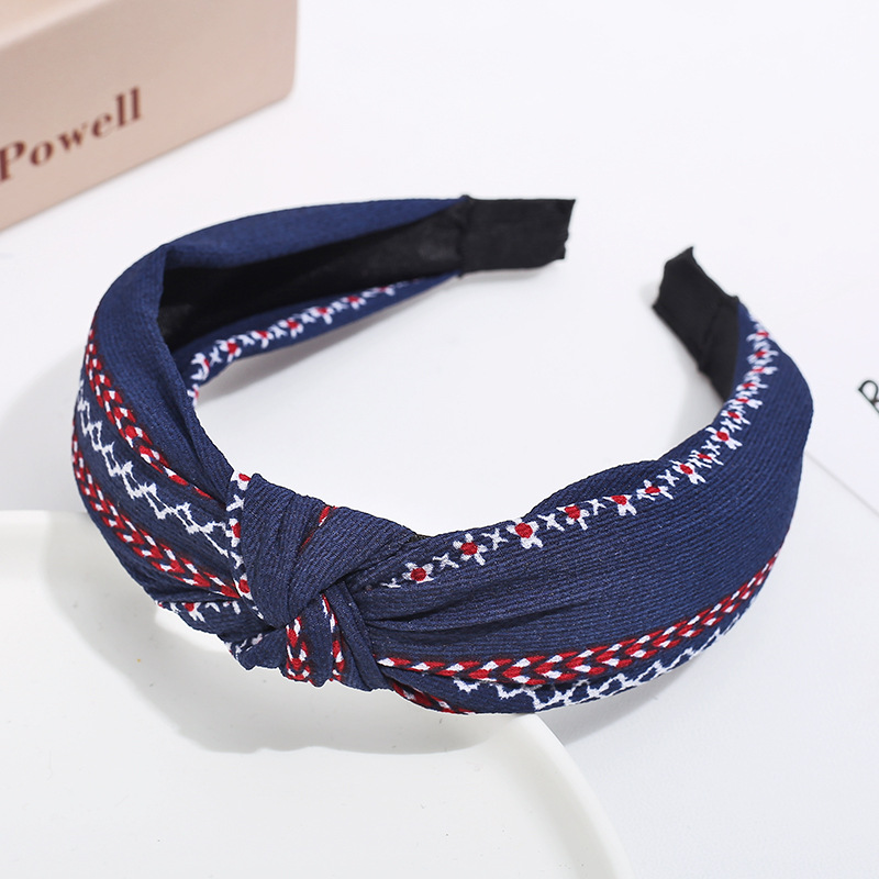 新款布艺波点发饰韩版女士纯色交叉印花打结条纹宽边中间打结发箍