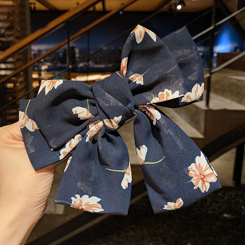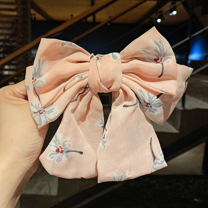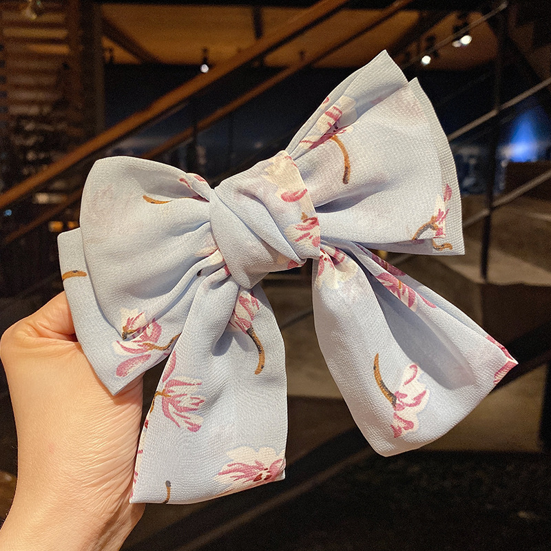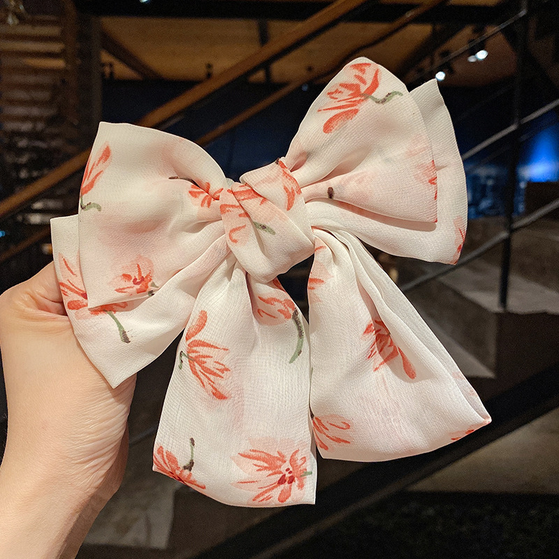 韩国新款双层蝴蝶结发夹韩版网红可爱森系雪纺印花弹簧夹顶夹头饰