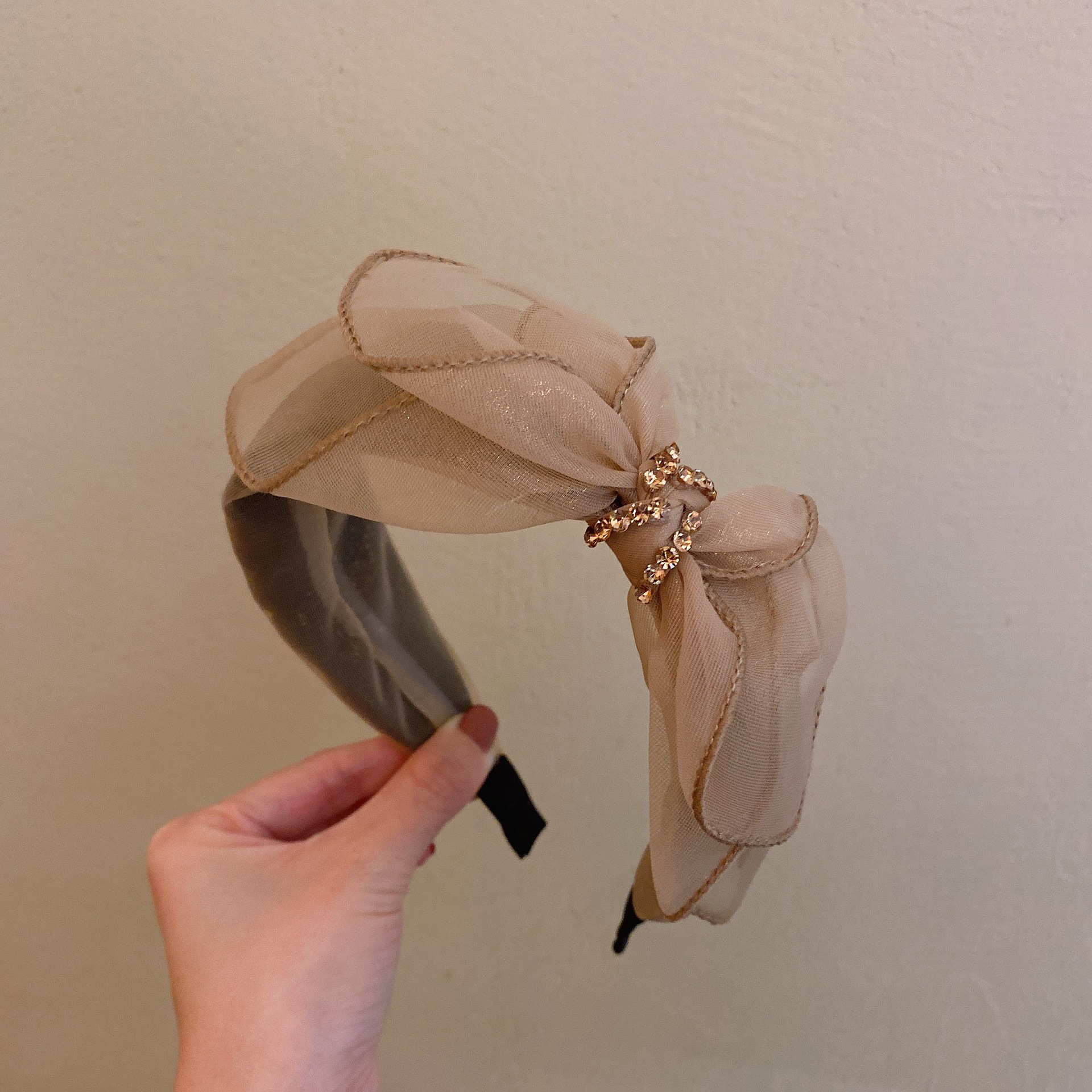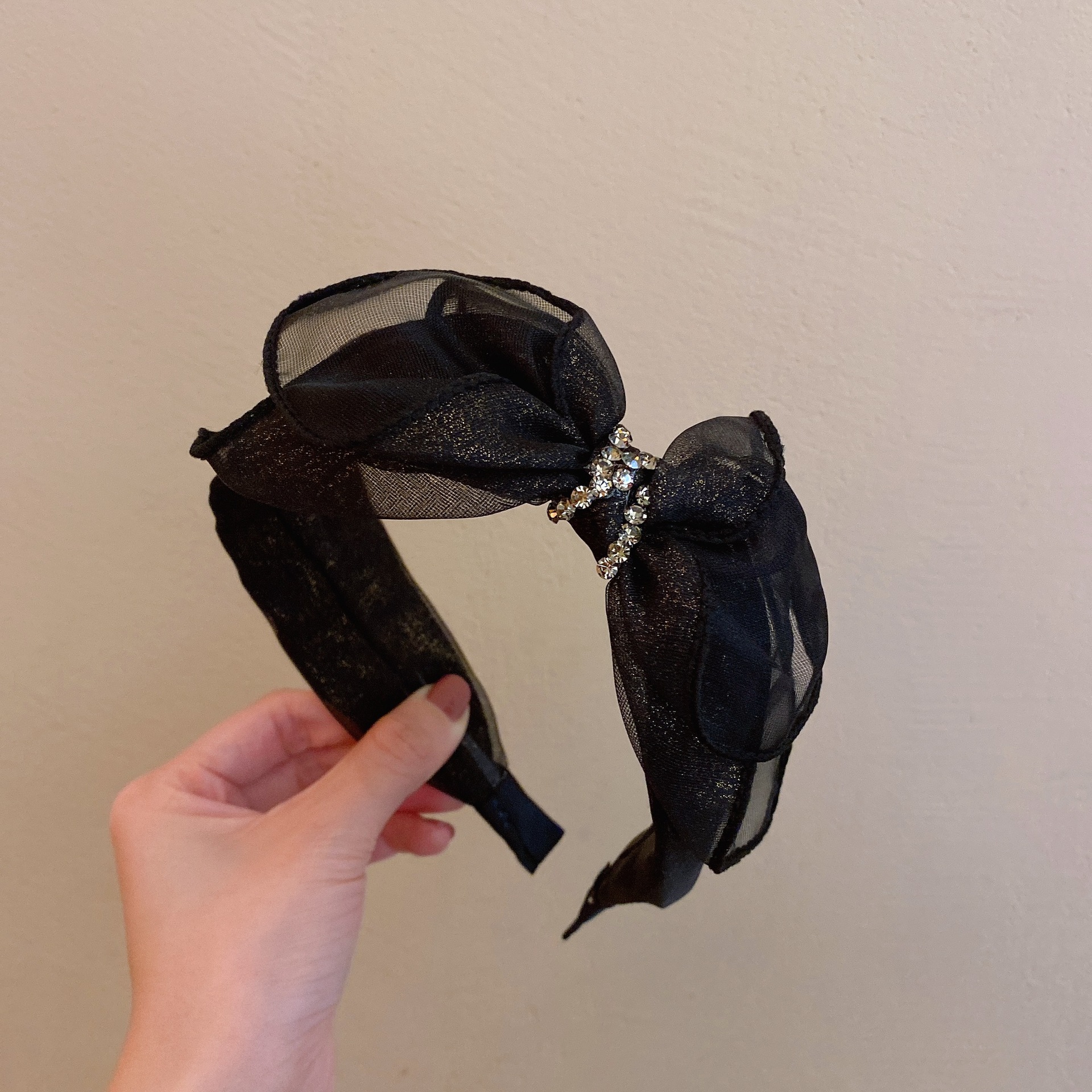 日韩欧根纱侧边蝴蝶结发箍高级感显脸小捷克钻头箍网红新款发饰女