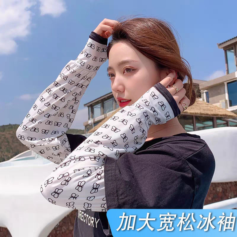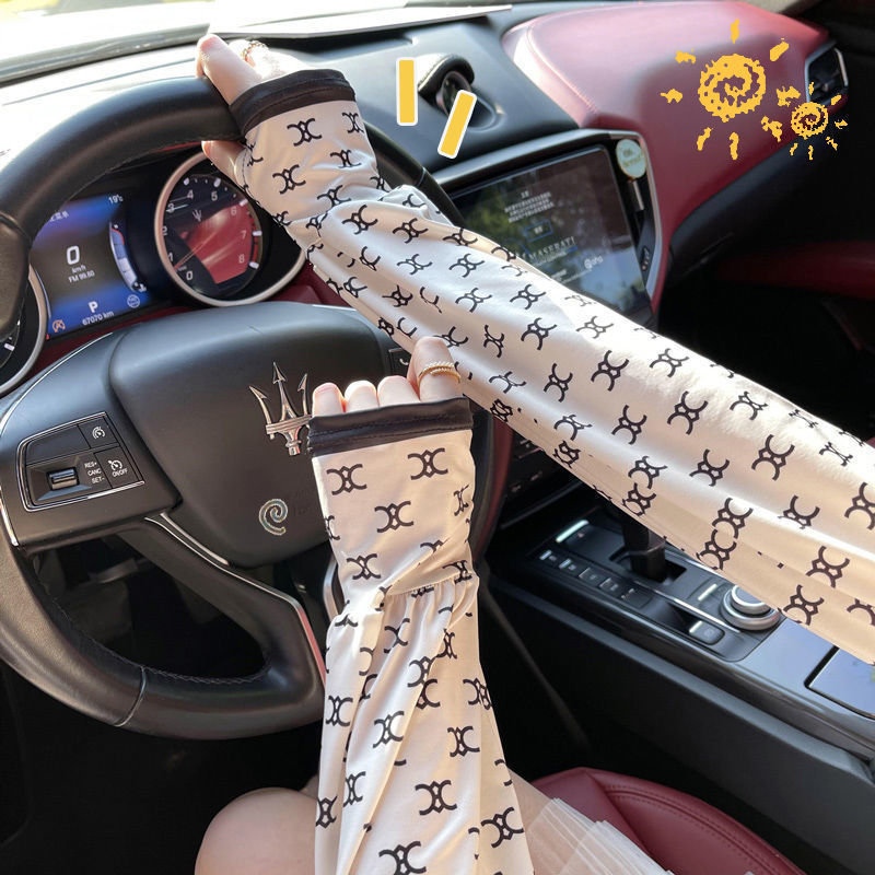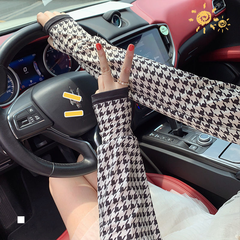 千鸟格凯旋门图案宽松冰袖防晒冰袖印花时尚高弹力户外防晒冰袖
