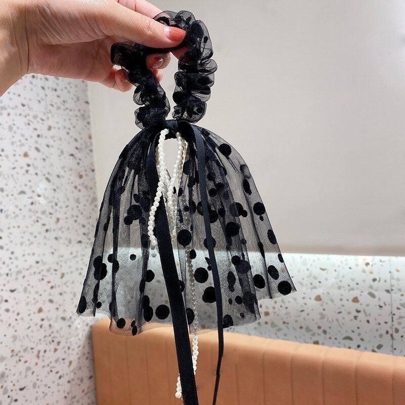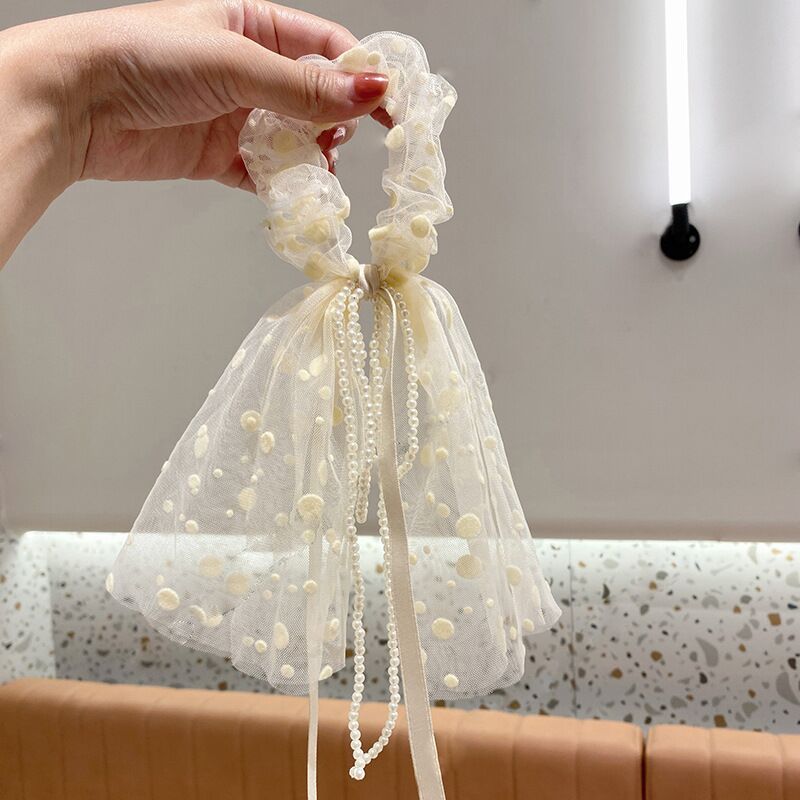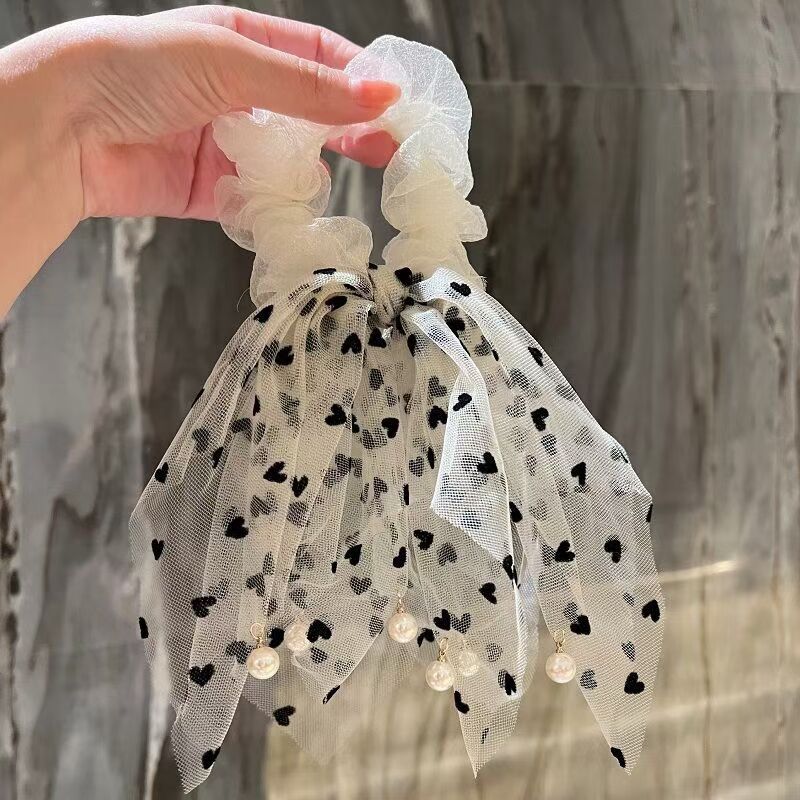 韩版珍珠吊坠飘带大肠发圈布艺皮筋蕾丝爱心头绳网红扎头发发绳