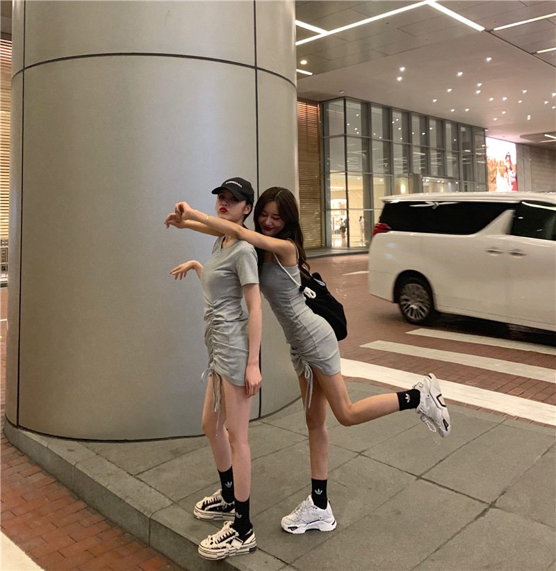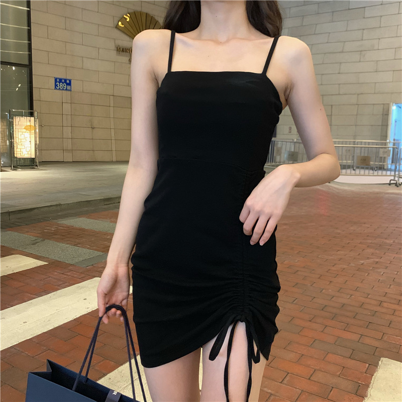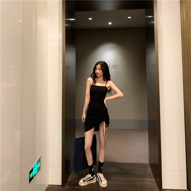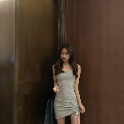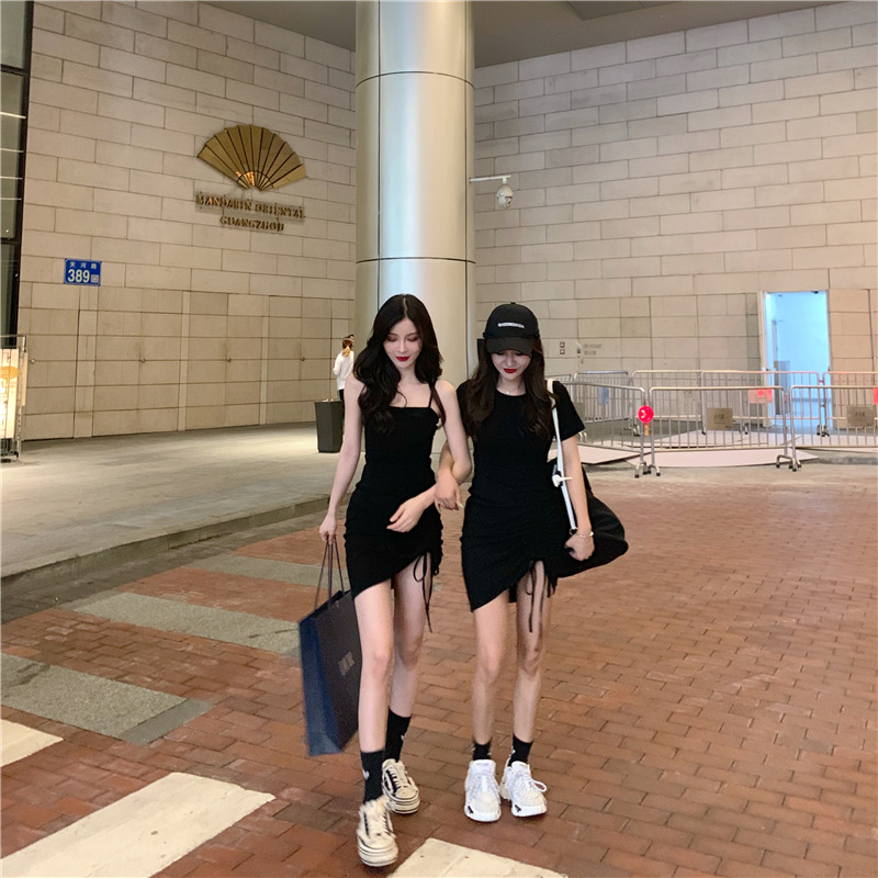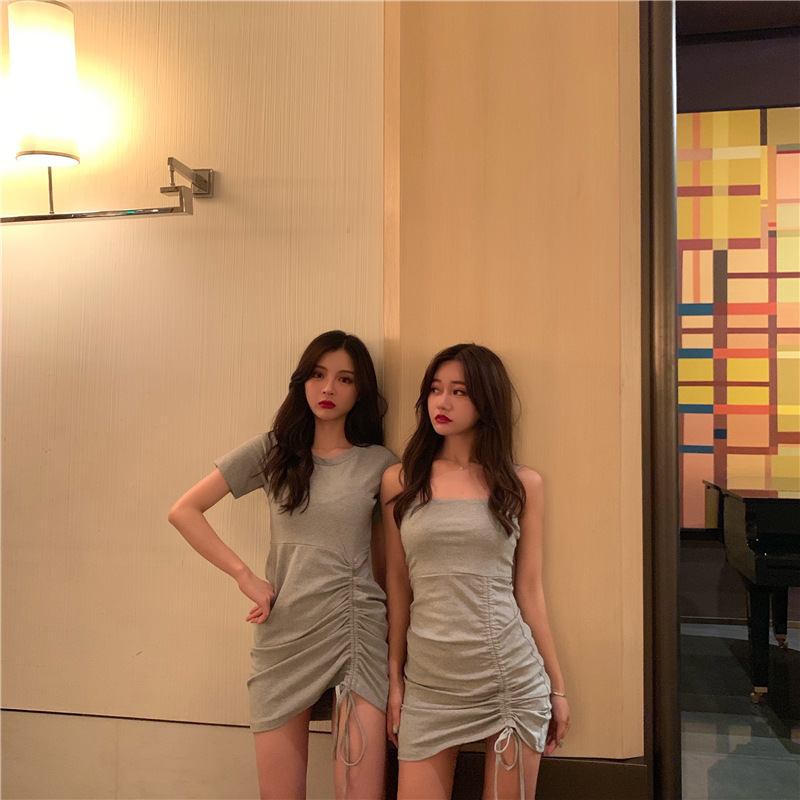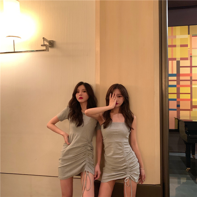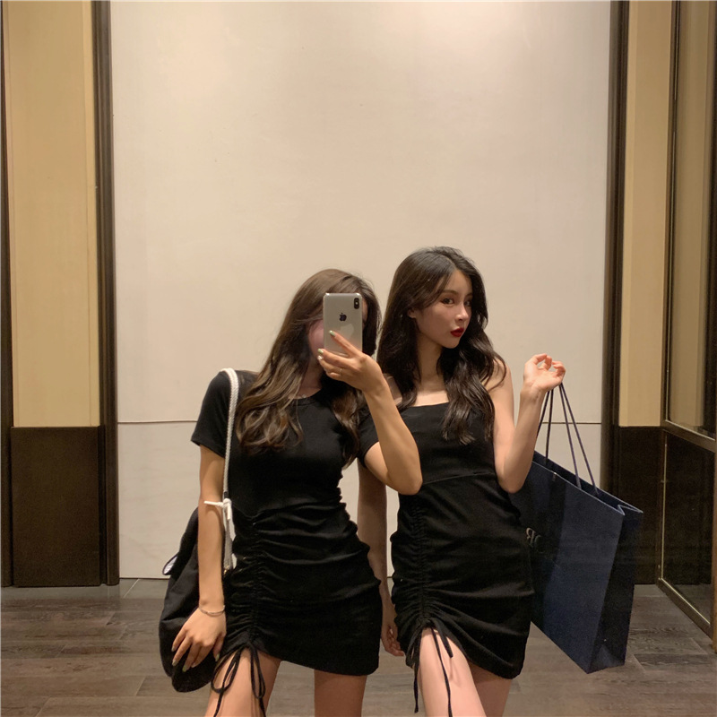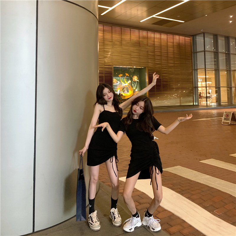 性感吊带气质闺蜜装短袖连衣裙女夏季2022年新款抽绳显瘦包臀裙子