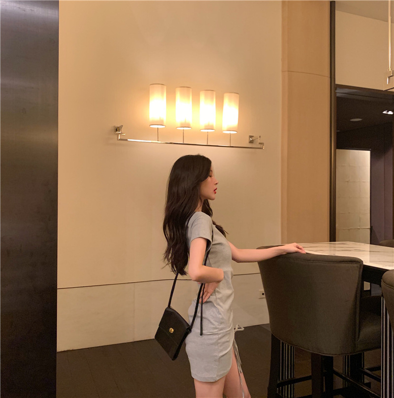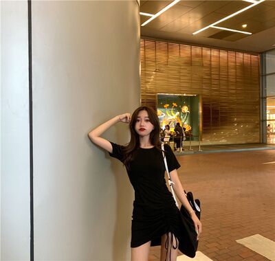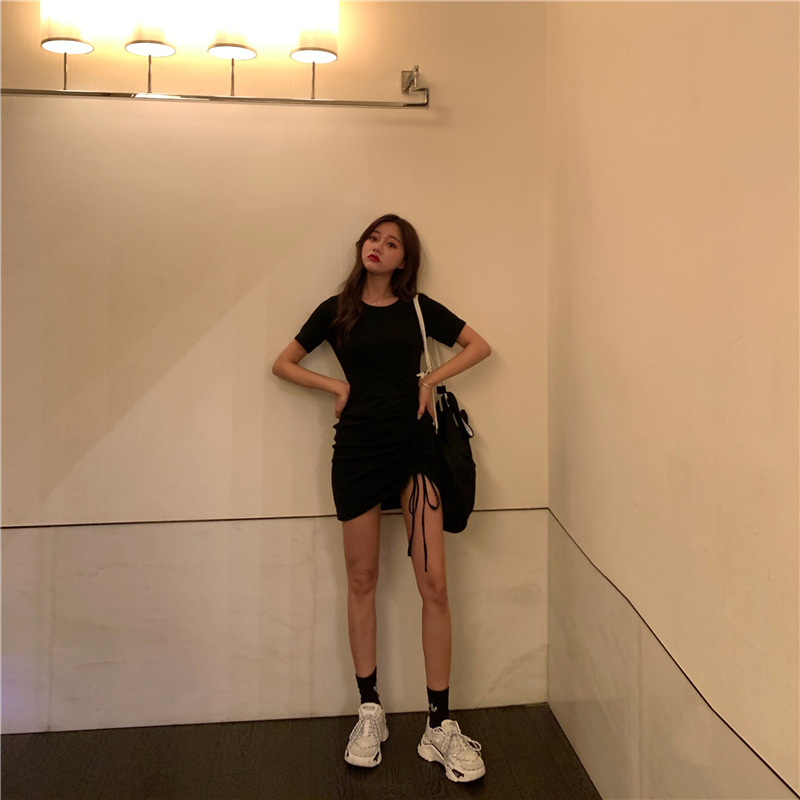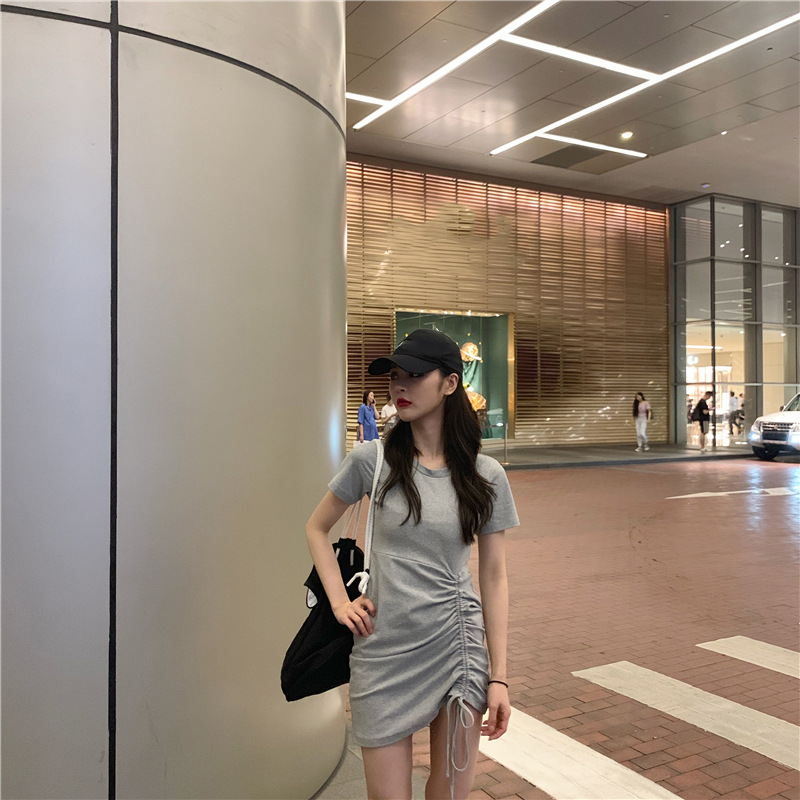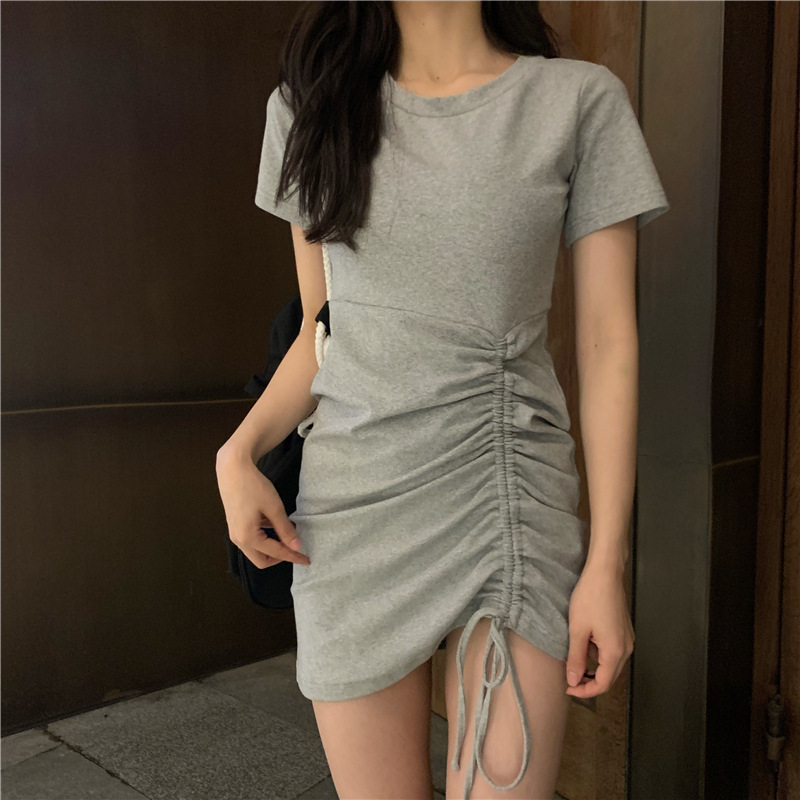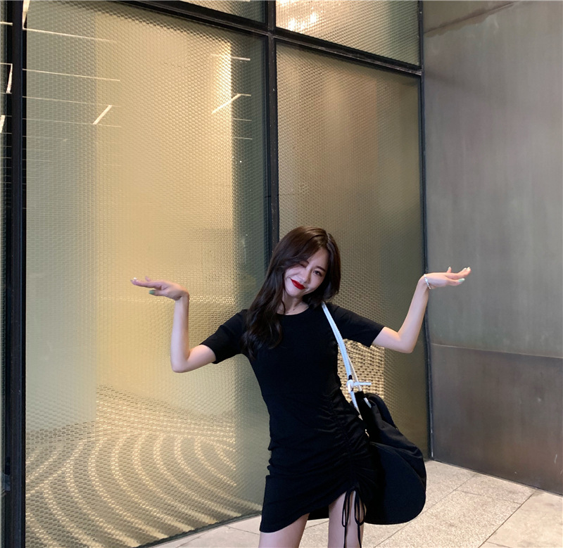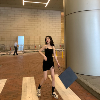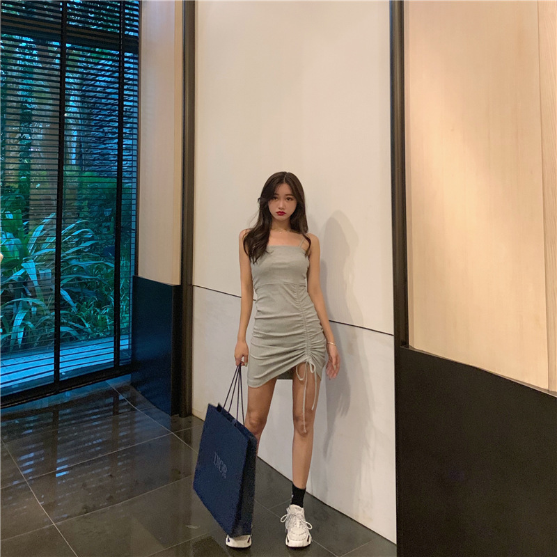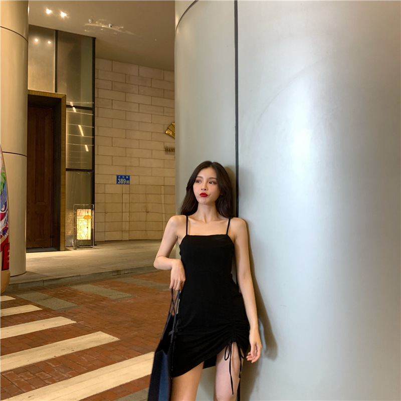 性感吊带气质闺蜜装短袖连衣裙女夏季2022年新款抽绳显瘦包臀裙子