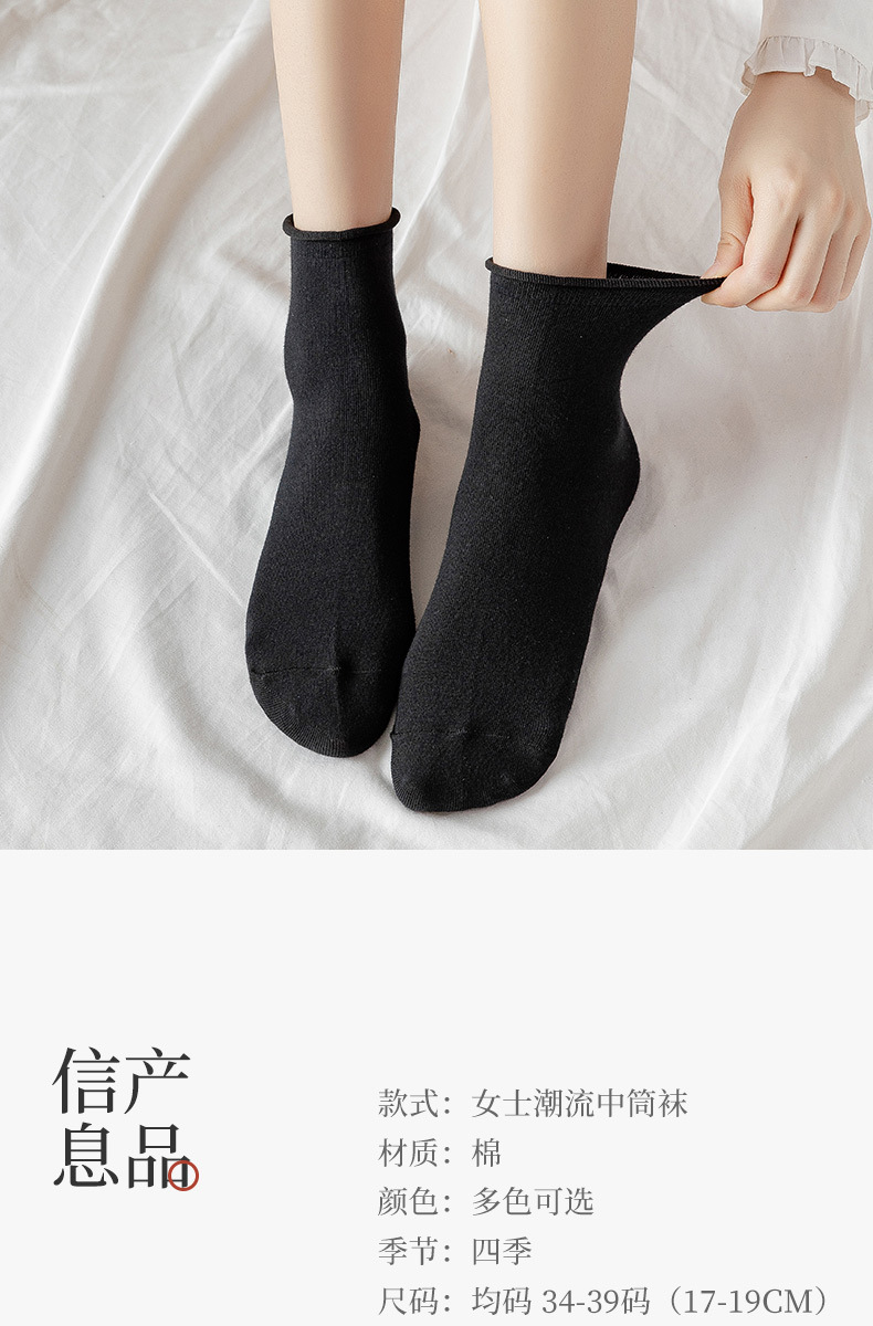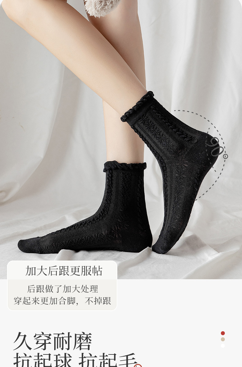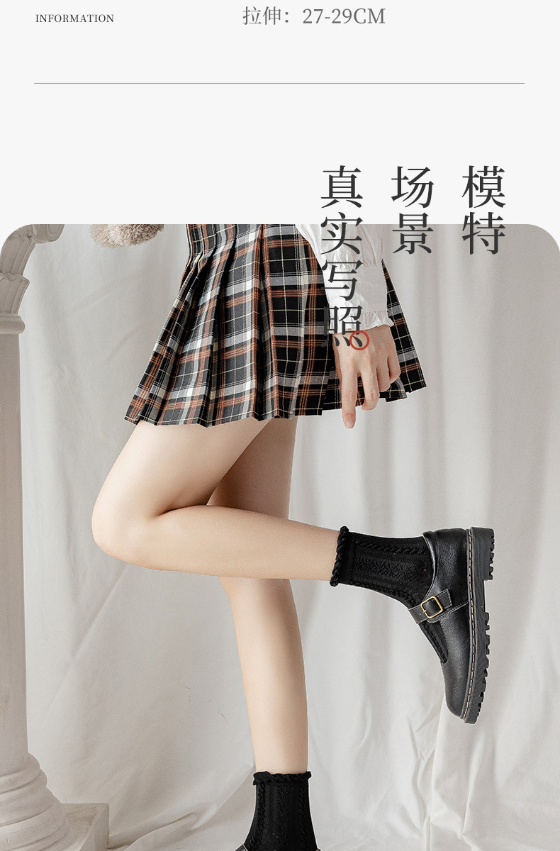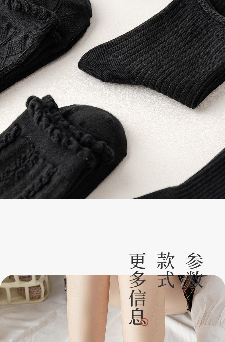 袜子女中筒袜春秋款纯色棉jk花边刺绣长筒袜夏季薄款黑色秋季长袜