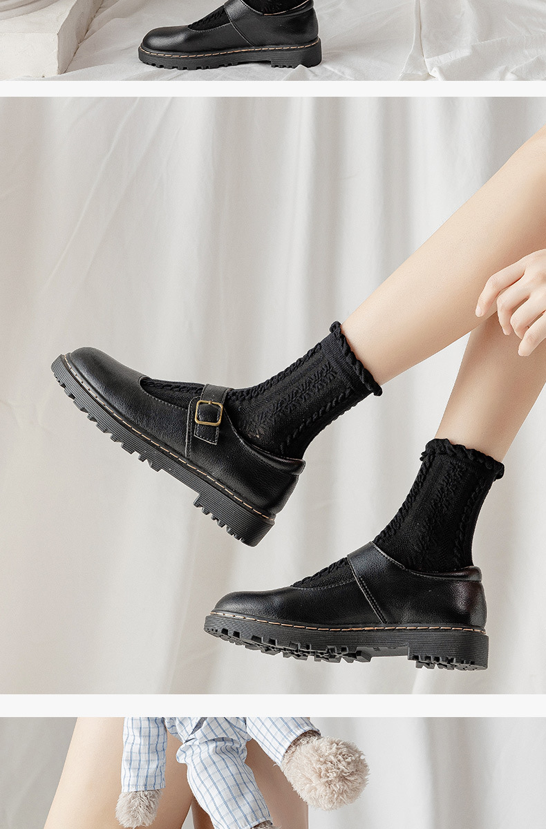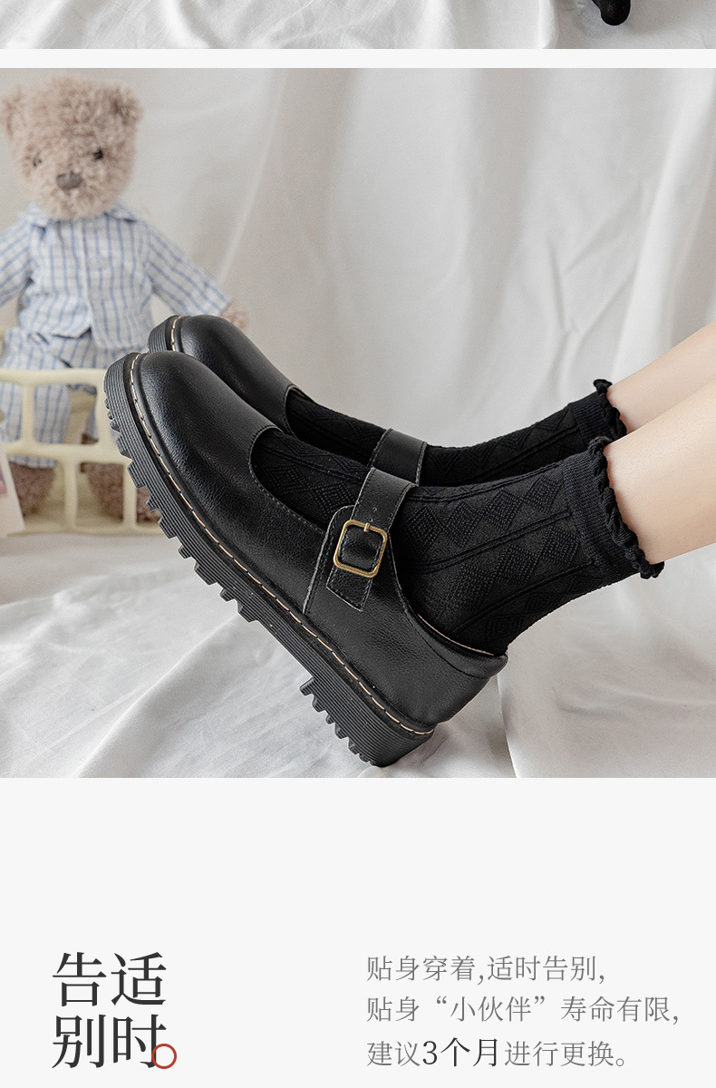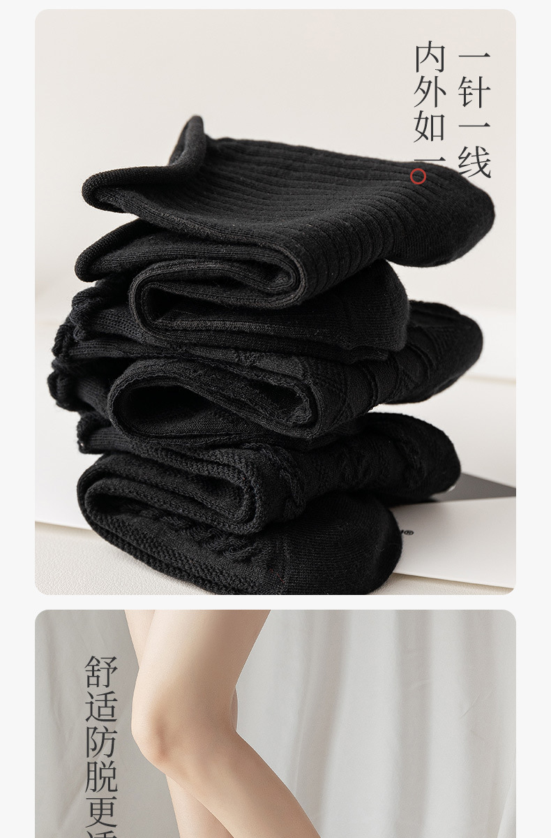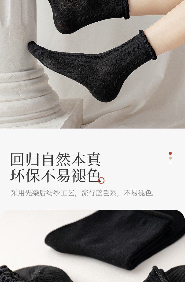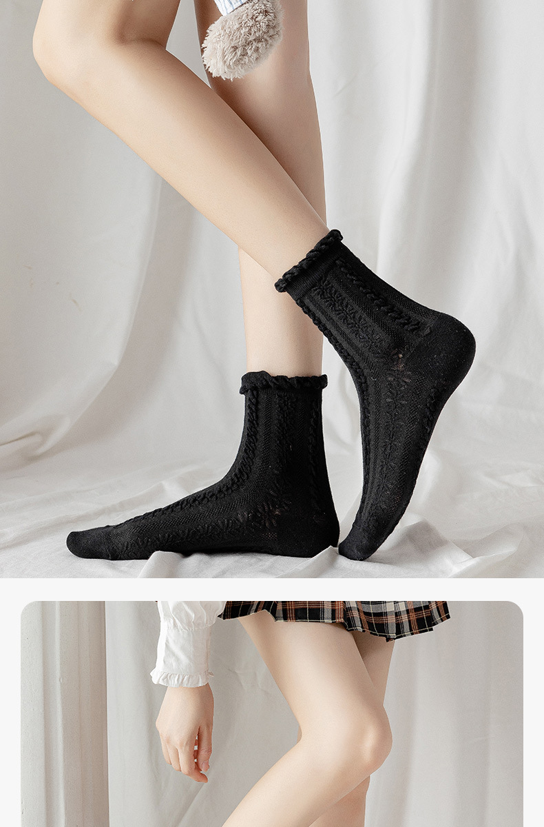 袜子女中筒袜春秋款纯色棉jk花边刺绣长筒袜夏季薄款黑色秋季长袜