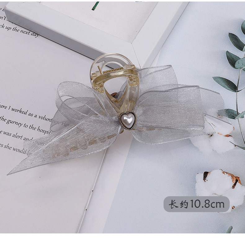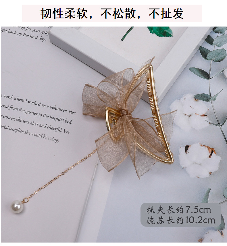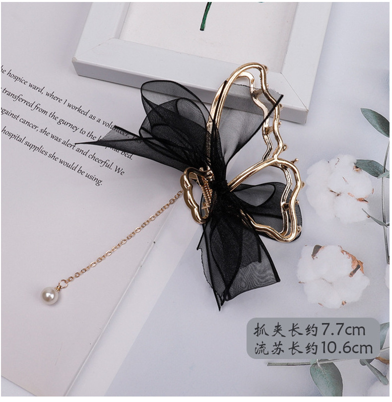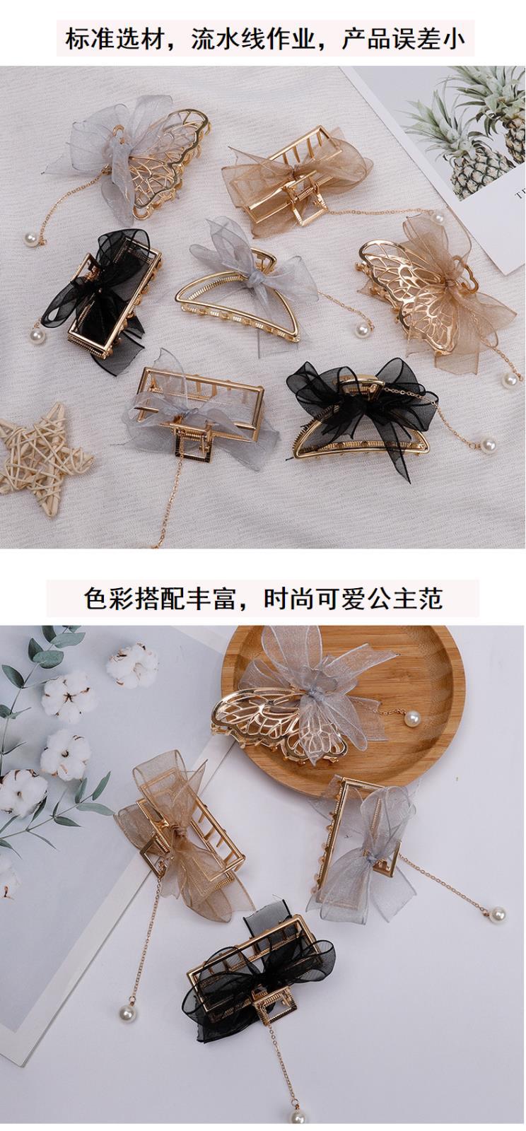 韩版网红发夹蝴蝶结网纱珍珠吊坠鲨鱼夹仙女后脑水钻合金头夹抓夹