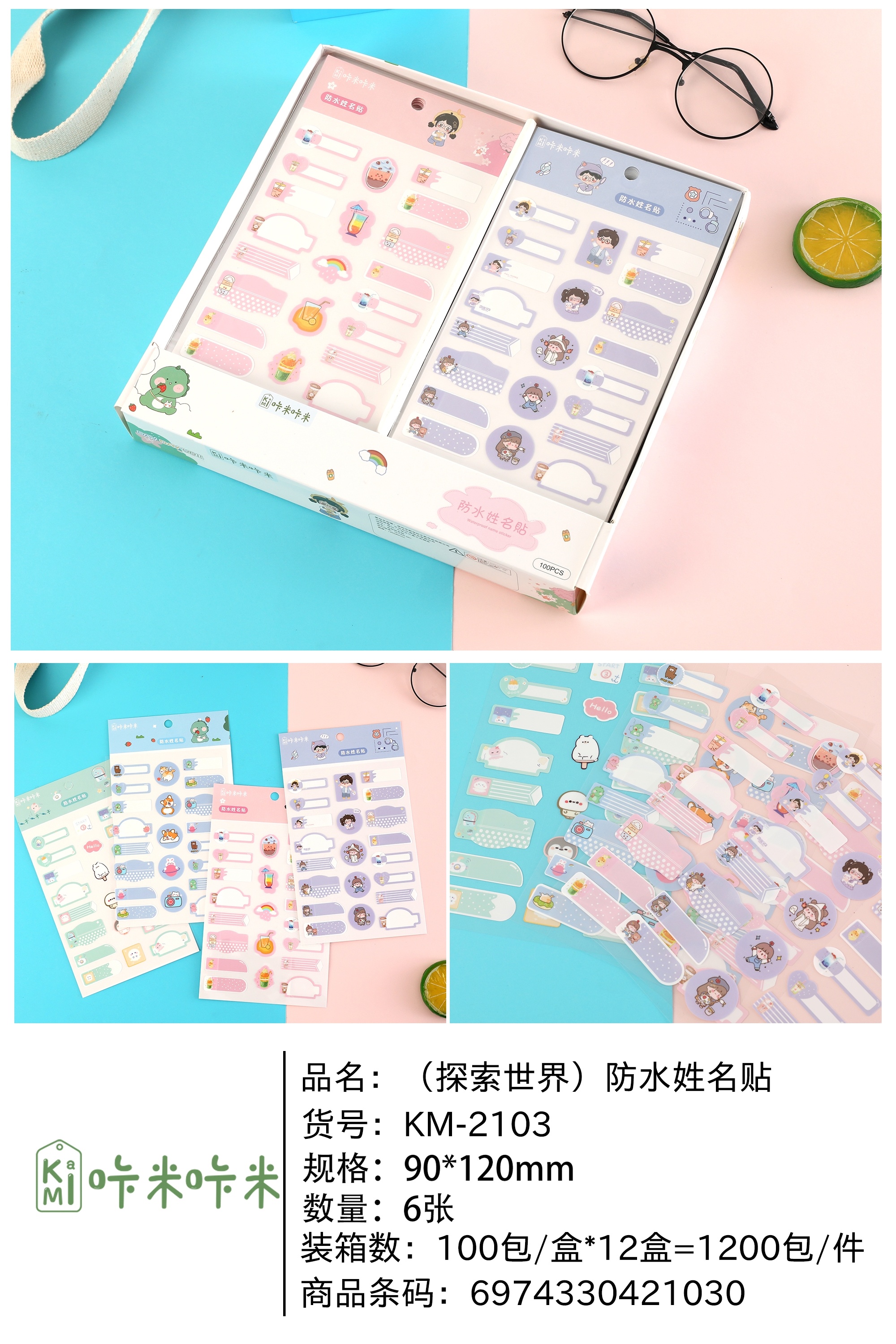 姓名贴标签卡通防水手写自粘小学生粘贴纸标记记号写名字杯子签名