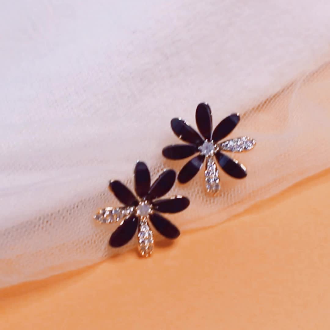 厂家新款花朵人造锆石耳钉轻奢小众设计感小巧精致花瓣气质耳饰品