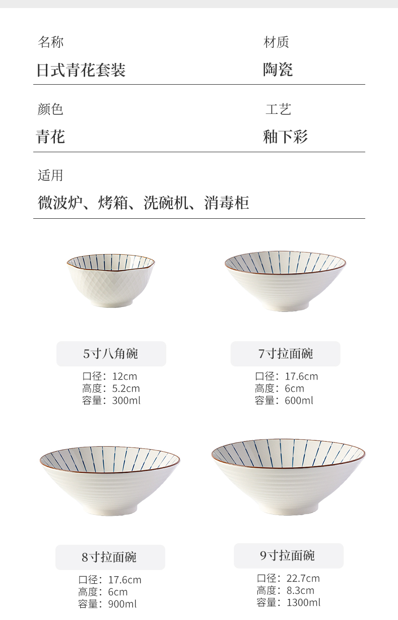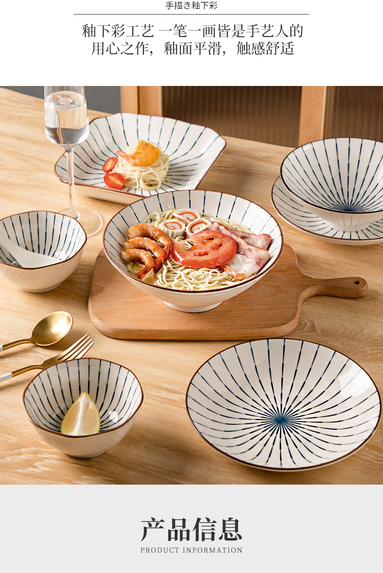 日式和风陶瓷拉面碗家用大碗汤面碗大号斗笠吃面条碗