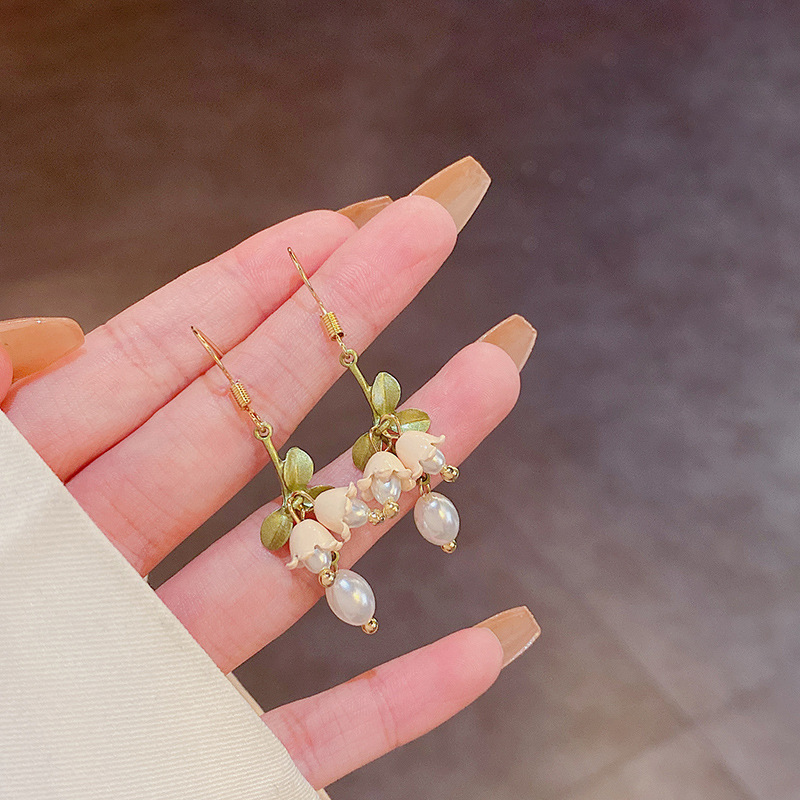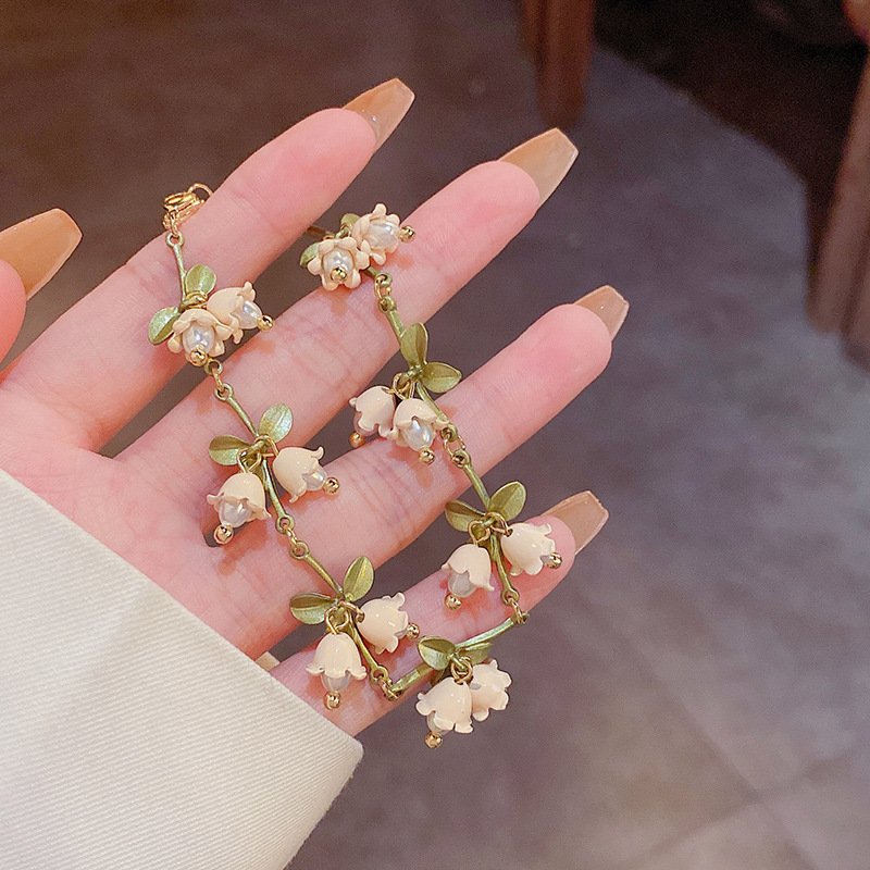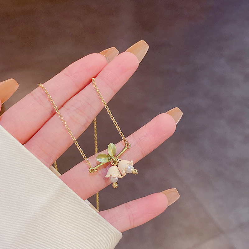 饰品小清新铃兰花珍珠耳环女钛钢项链手链套装轻奢高级设计感耳饰