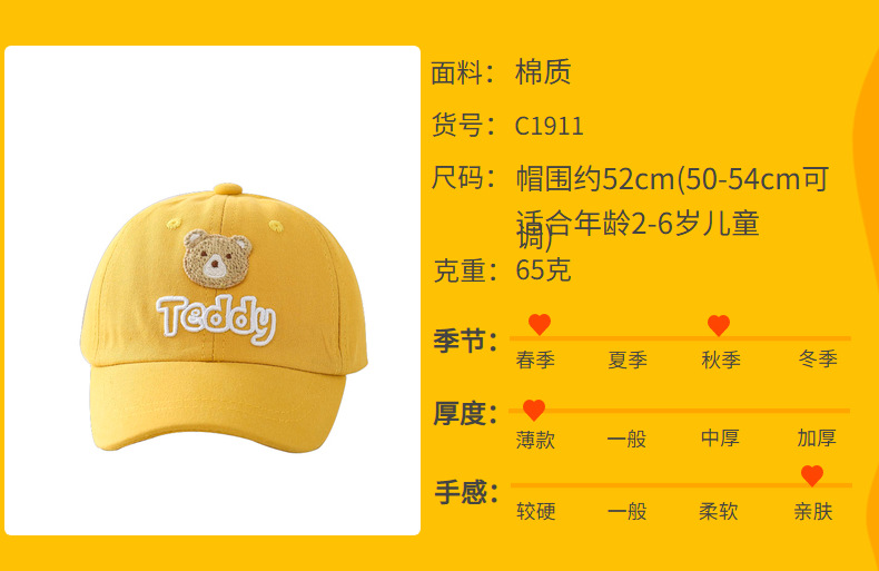 刺绣小熊儿童棒球帽春儿童帽子本惠新款卡通小童帽棉帽棒球帽批发