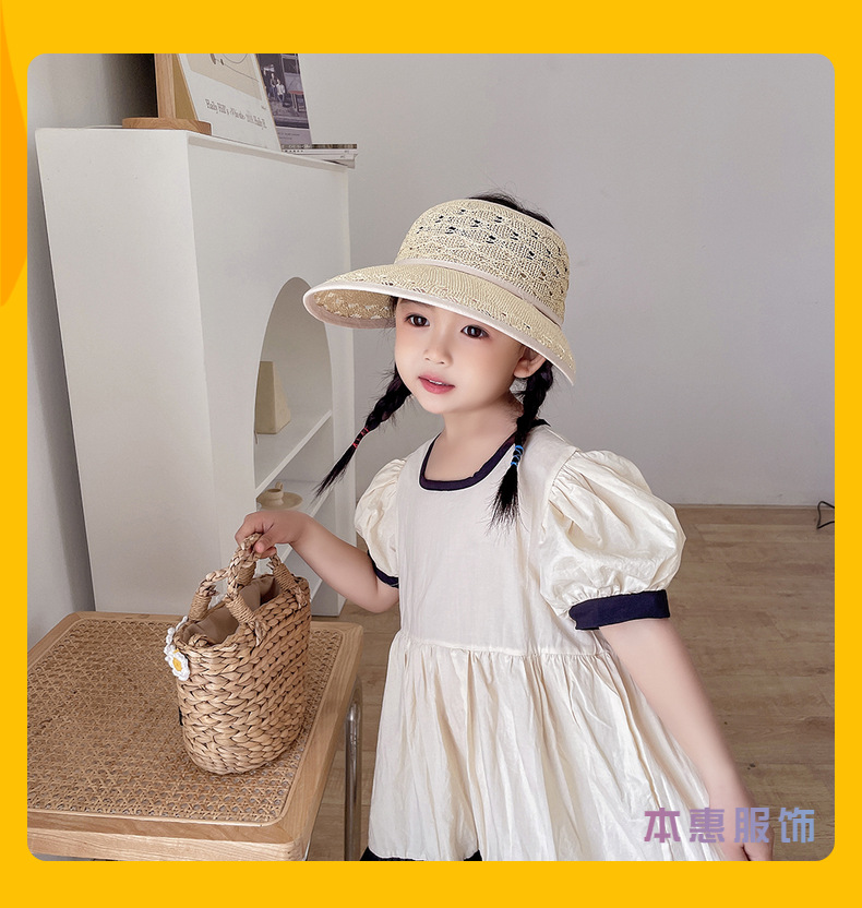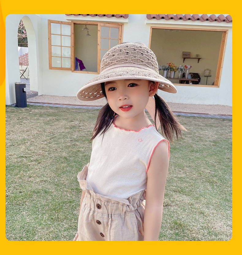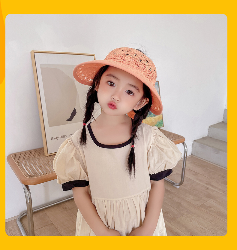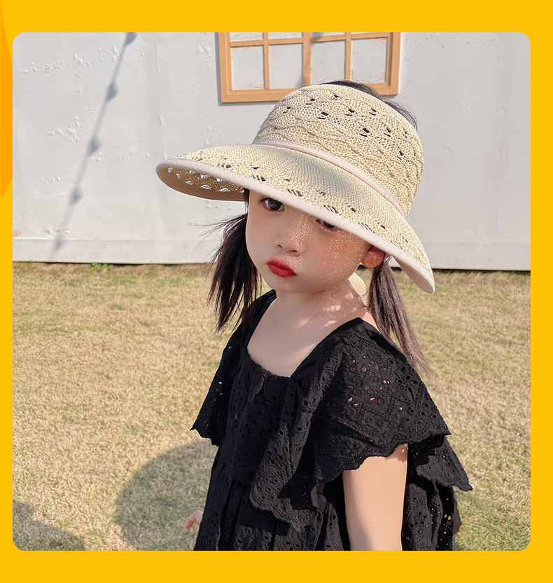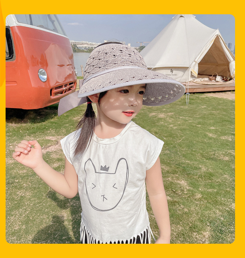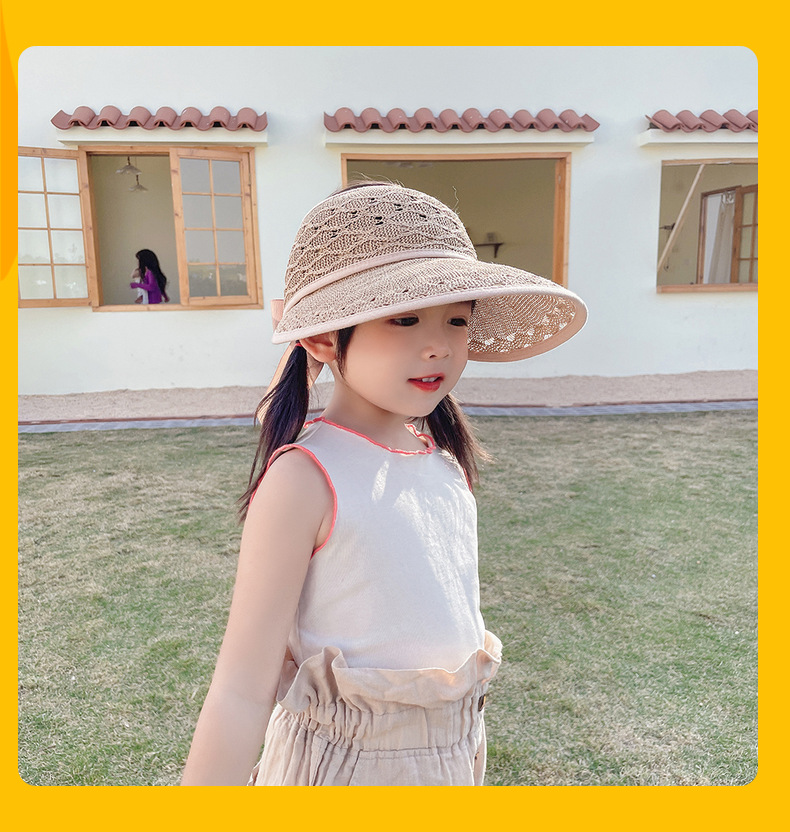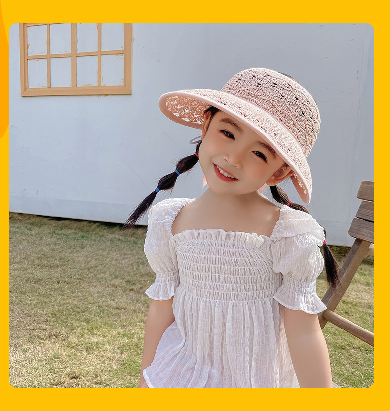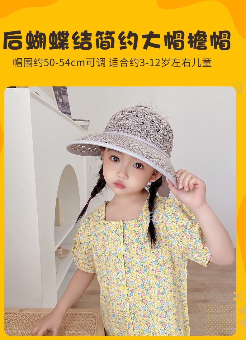 后蝴蝶结简约儿童大帽檐空顶帽夏天防晒女童草帽宝宝遮阳空顶草帽