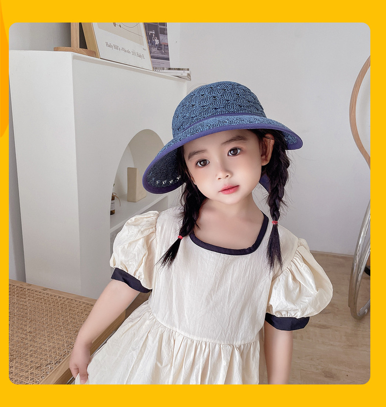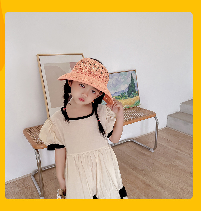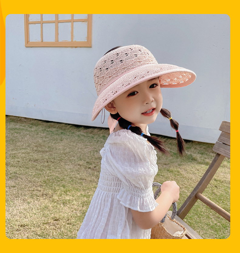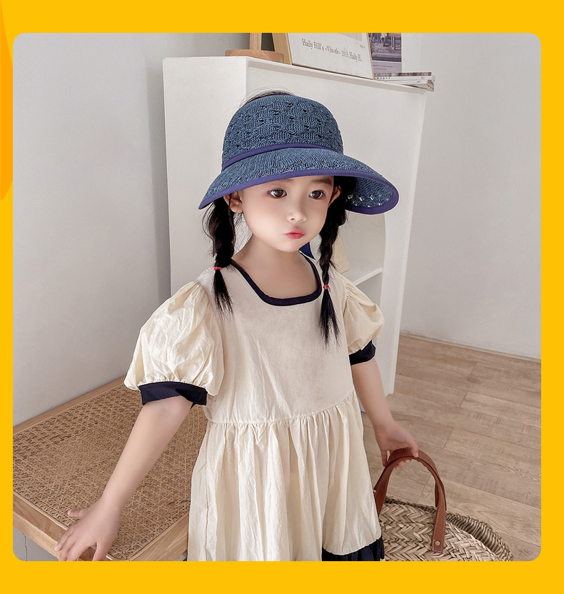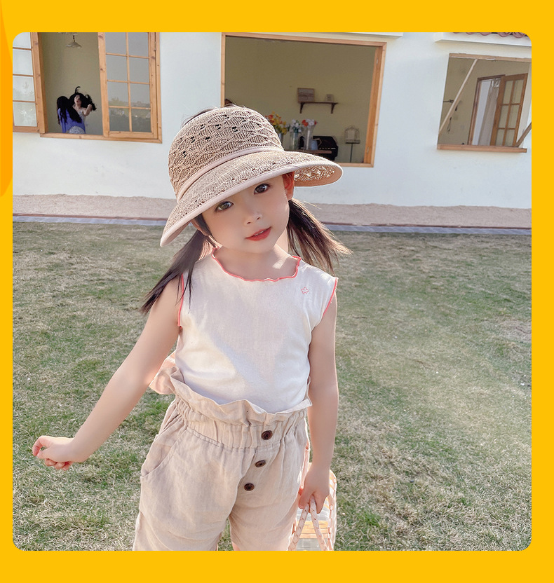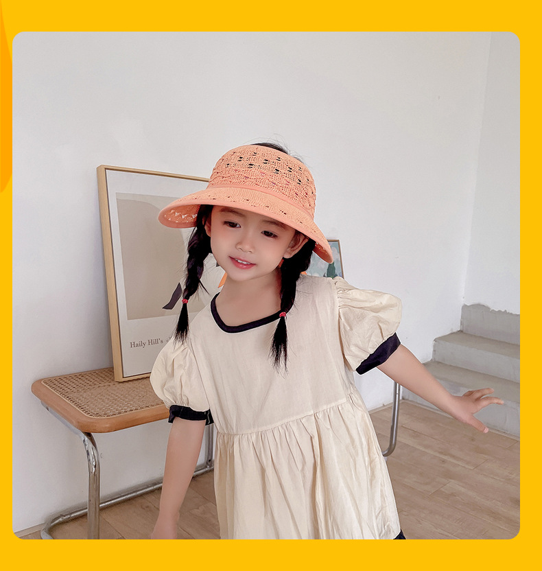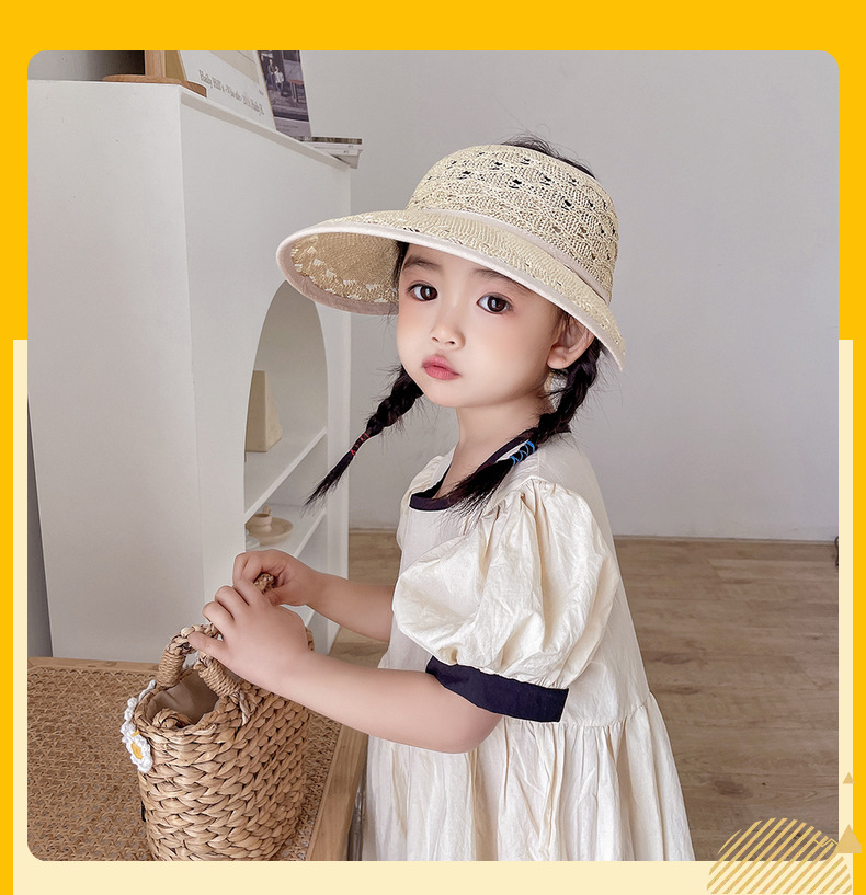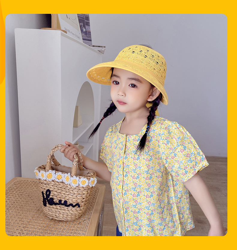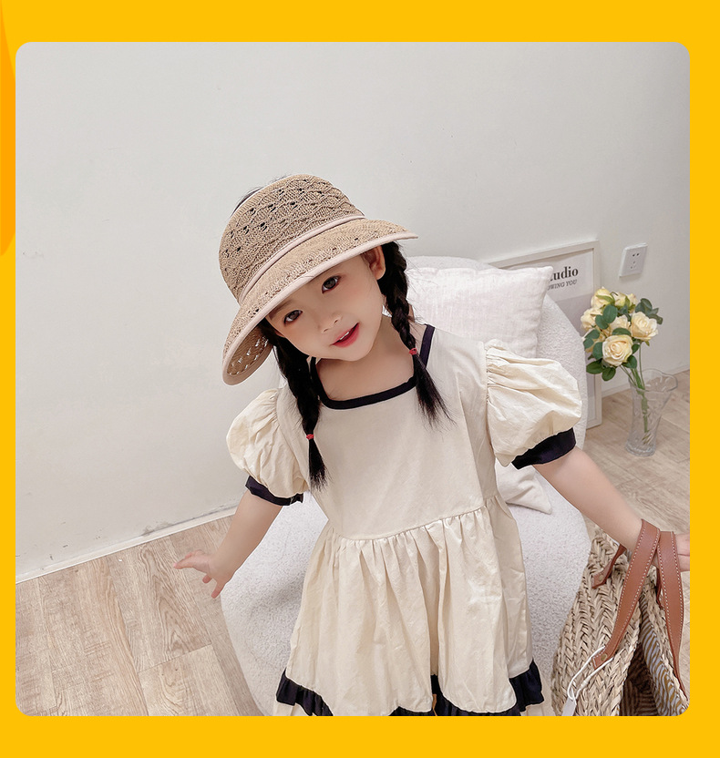 后蝴蝶结简约儿童大帽檐空顶帽夏天防晒女童草帽宝宝遮阳空顶草帽