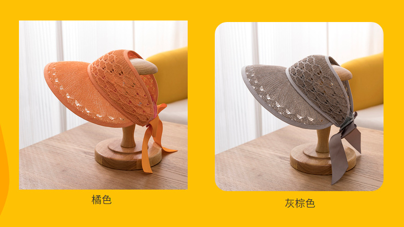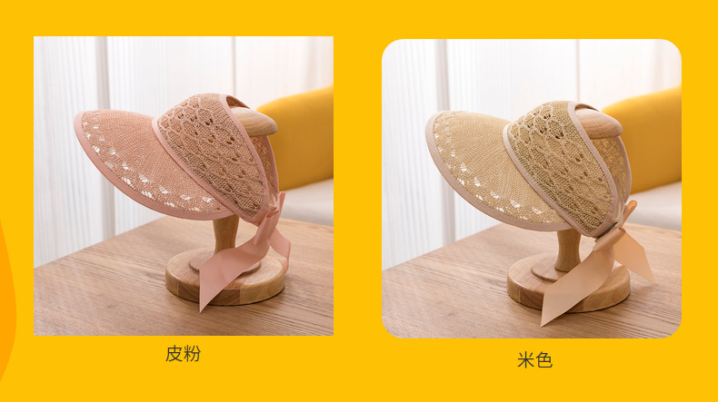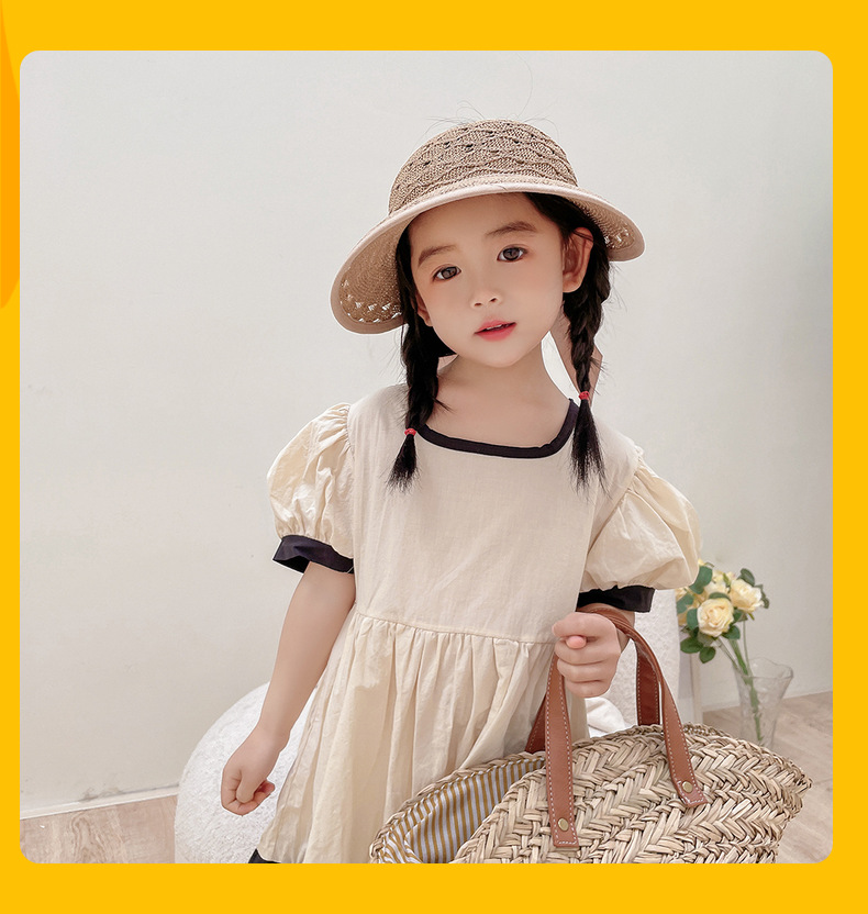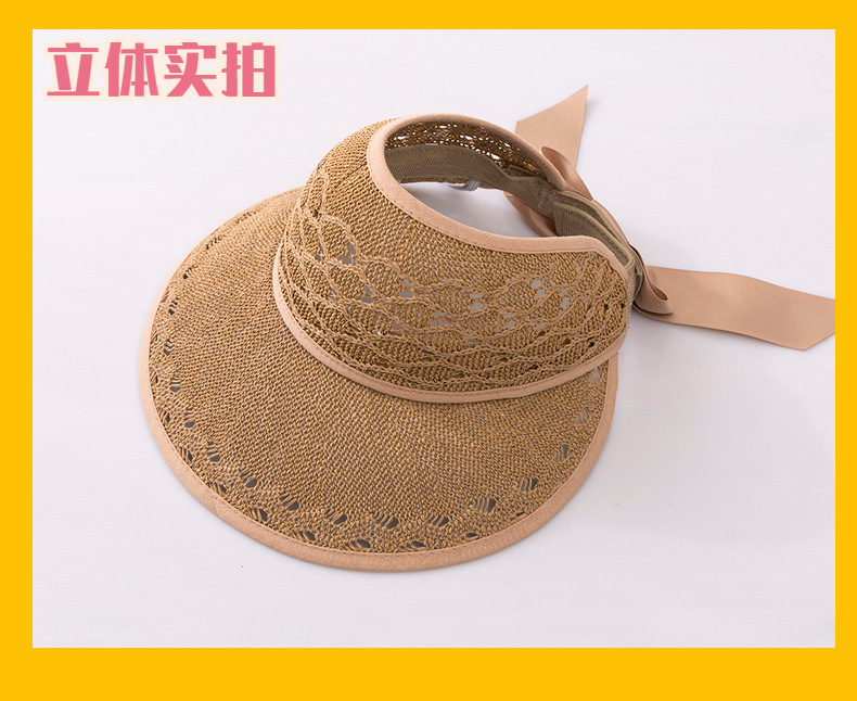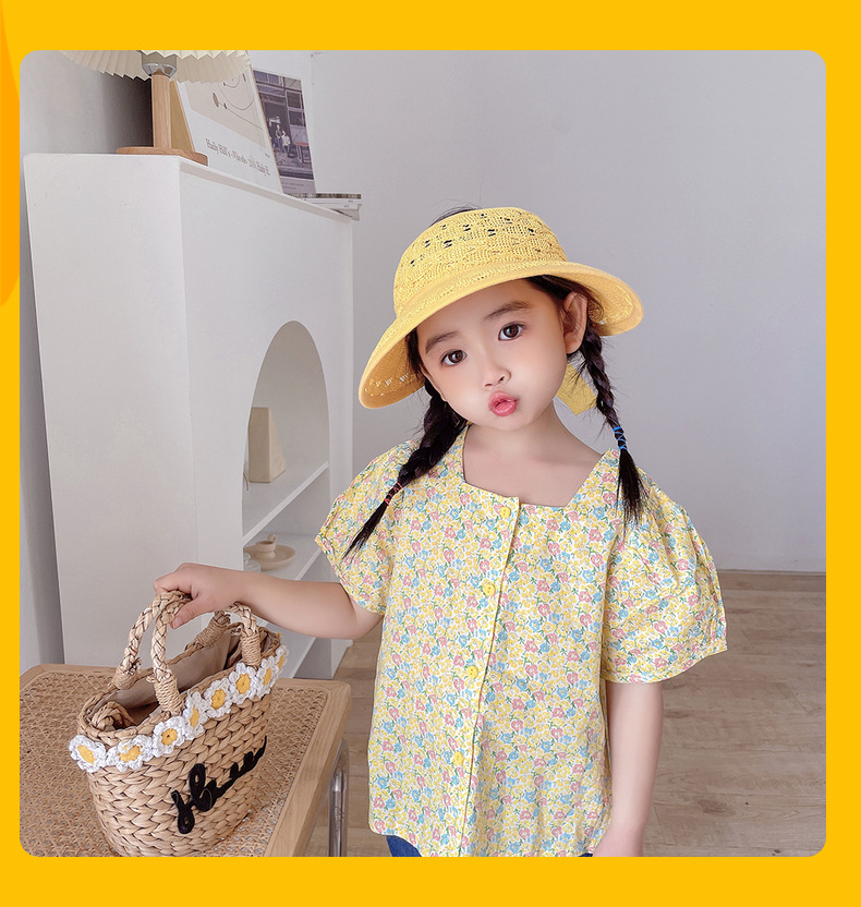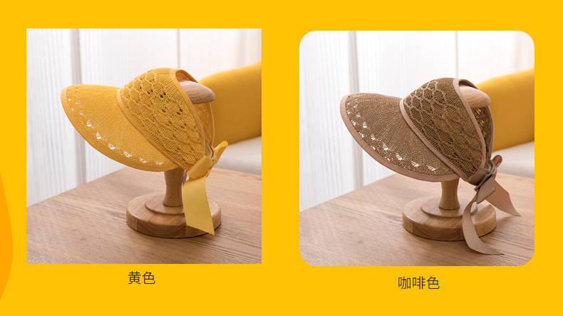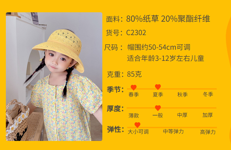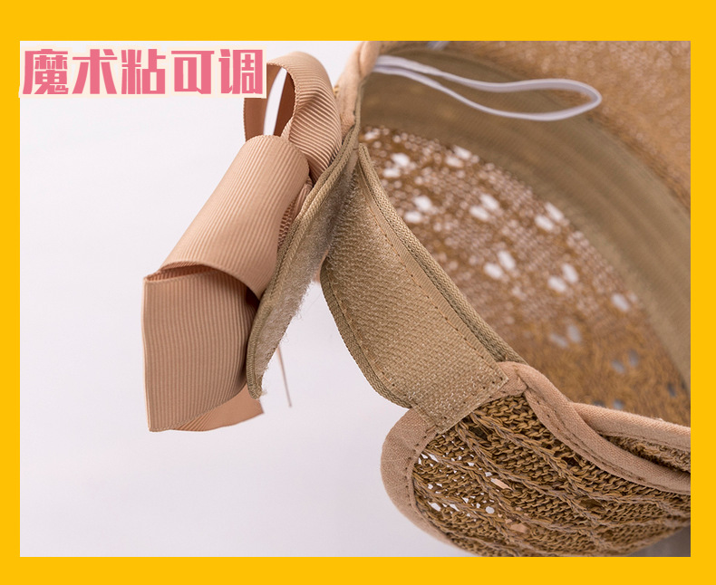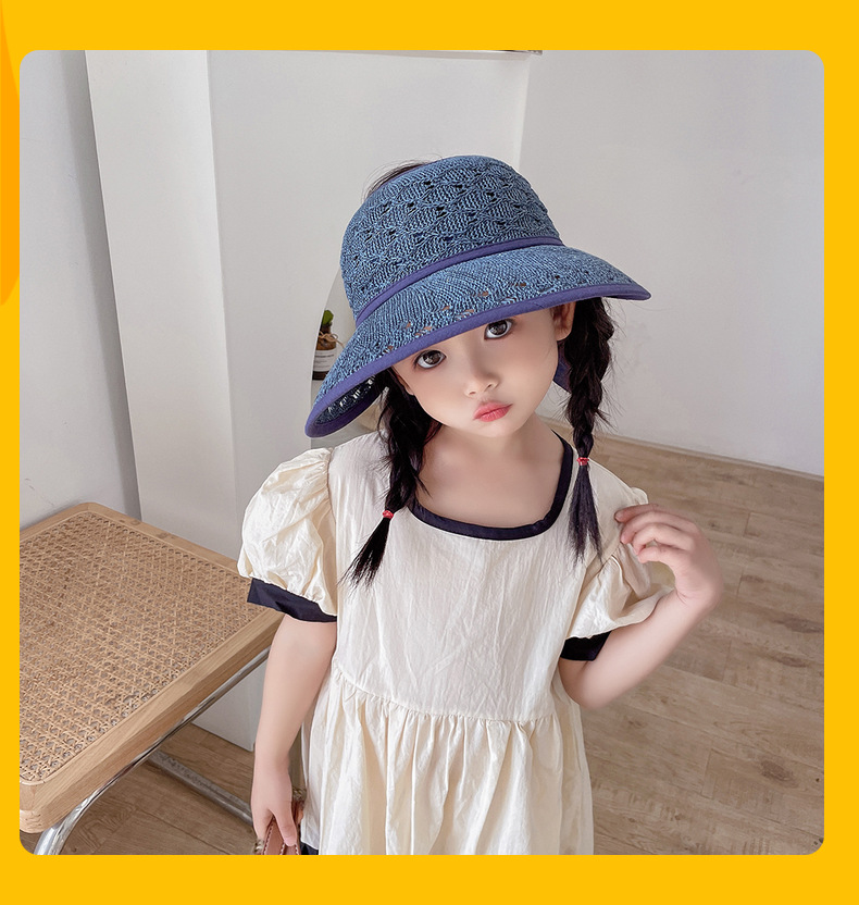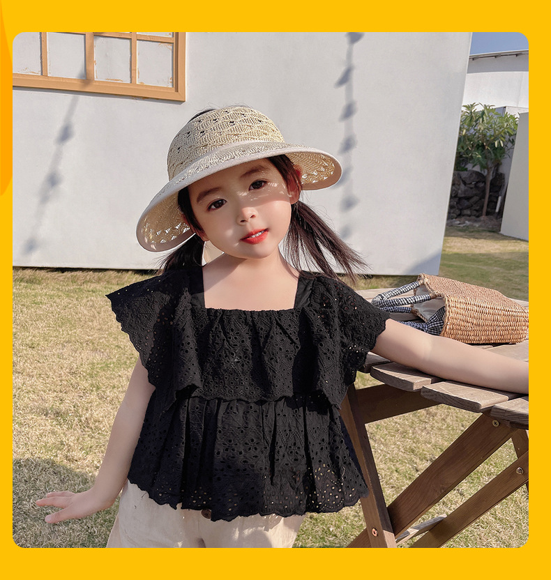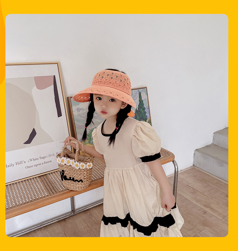 后蝴蝶结简约儿童大帽檐空顶帽夏天防晒女童草帽宝宝遮阳空顶草帽