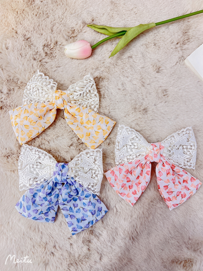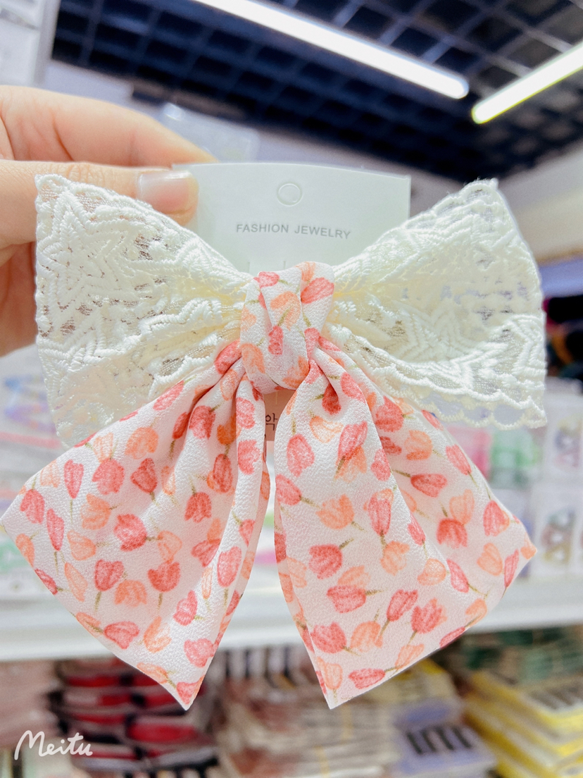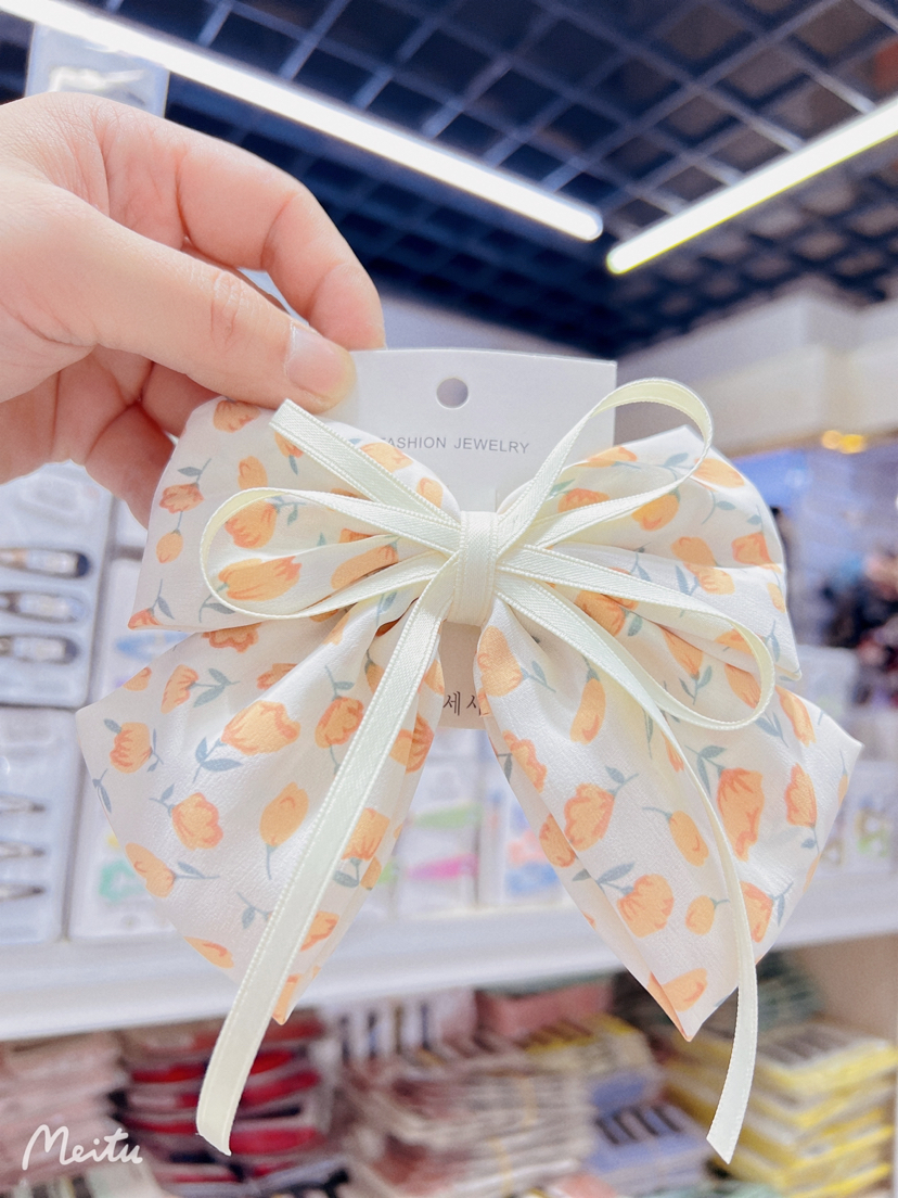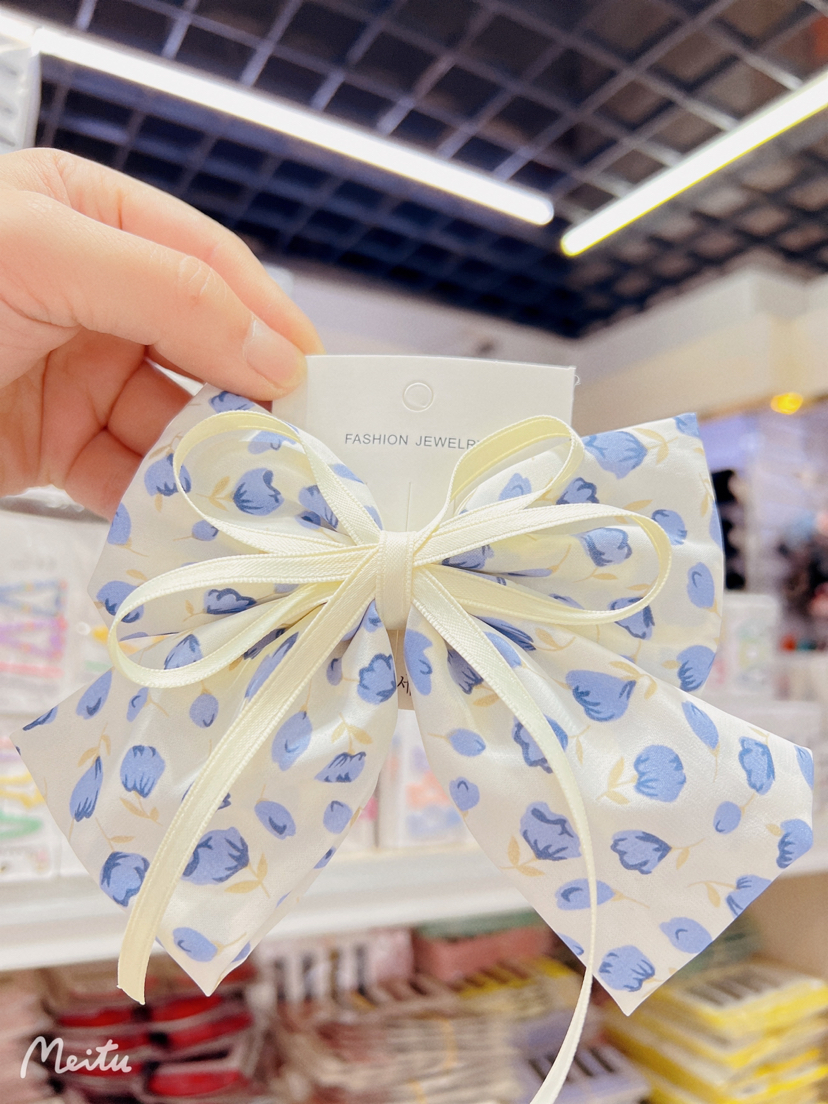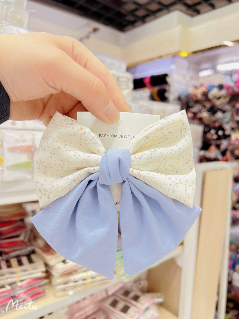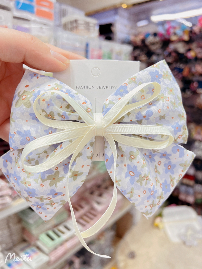 超仙大蝴蝶结发夹后脑勺头饰弹簧夹复古日系发卡碎花发饰顶夹网红