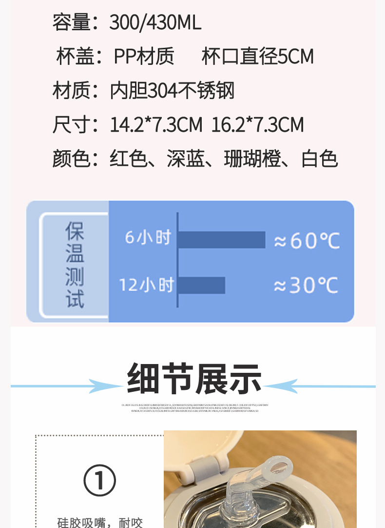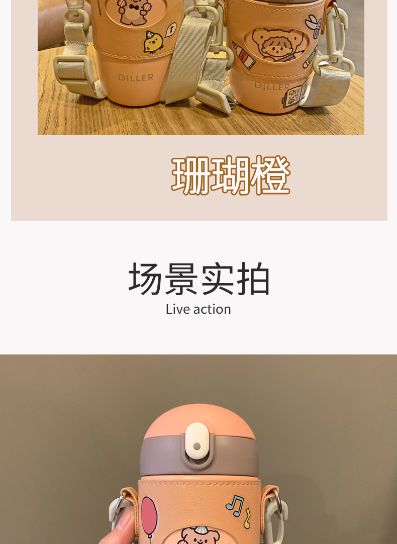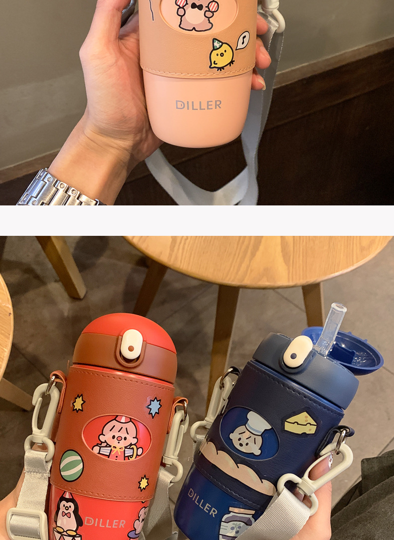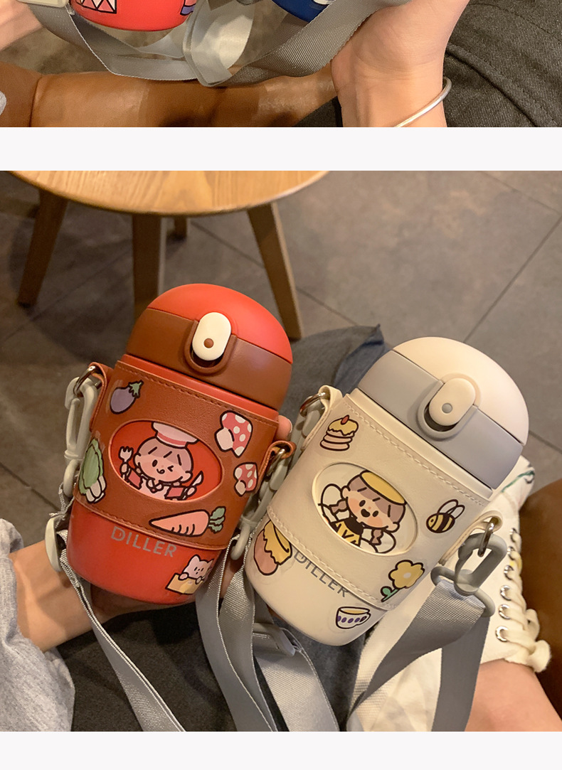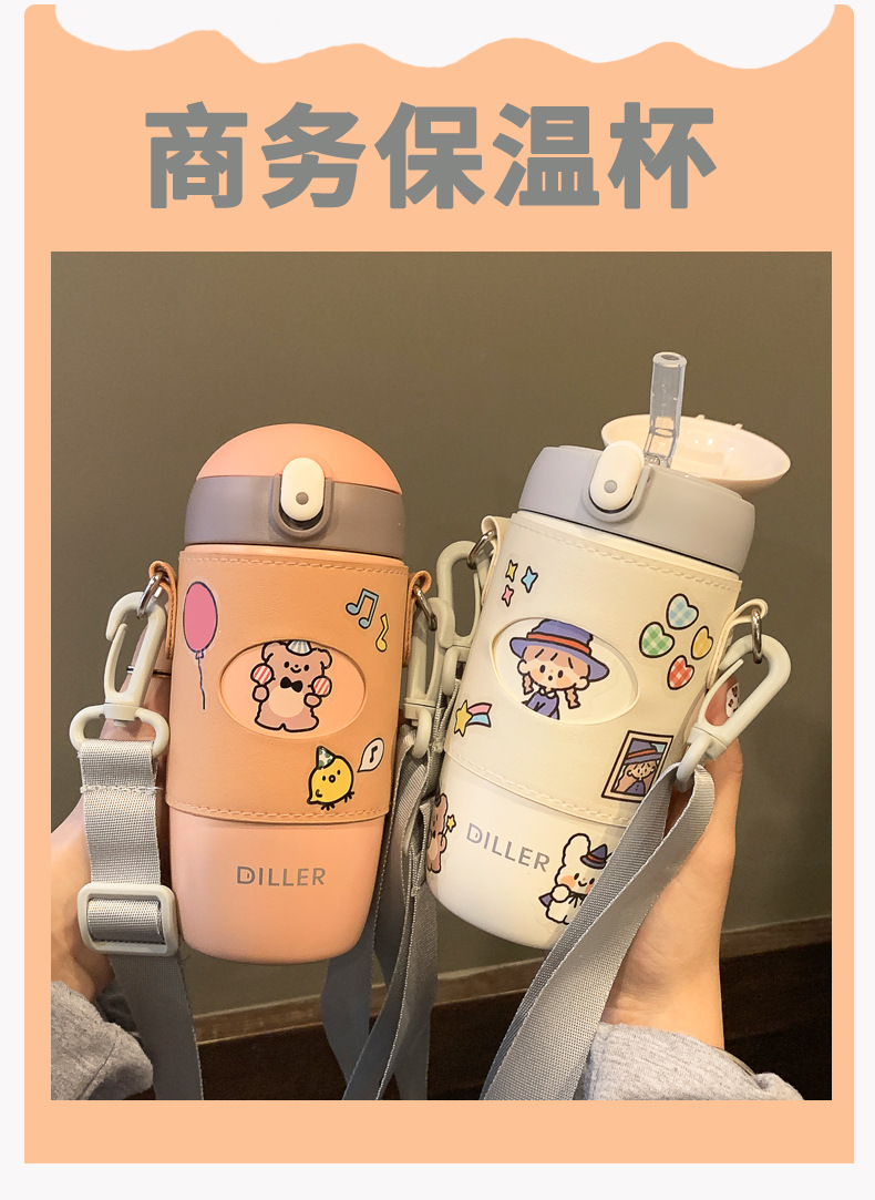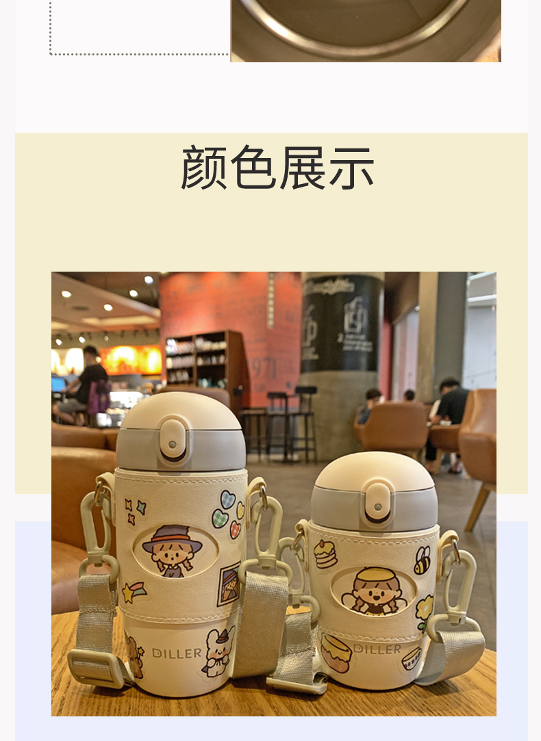 儿童保温杯带吸管防摔可爱创意萌水杯小学生幼儿园杯子便携女小巧