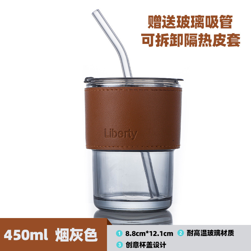 夏季新款竹节杯带吸管玻璃杯情侣便携式水杯带盖网红牛奶咖啡杯子