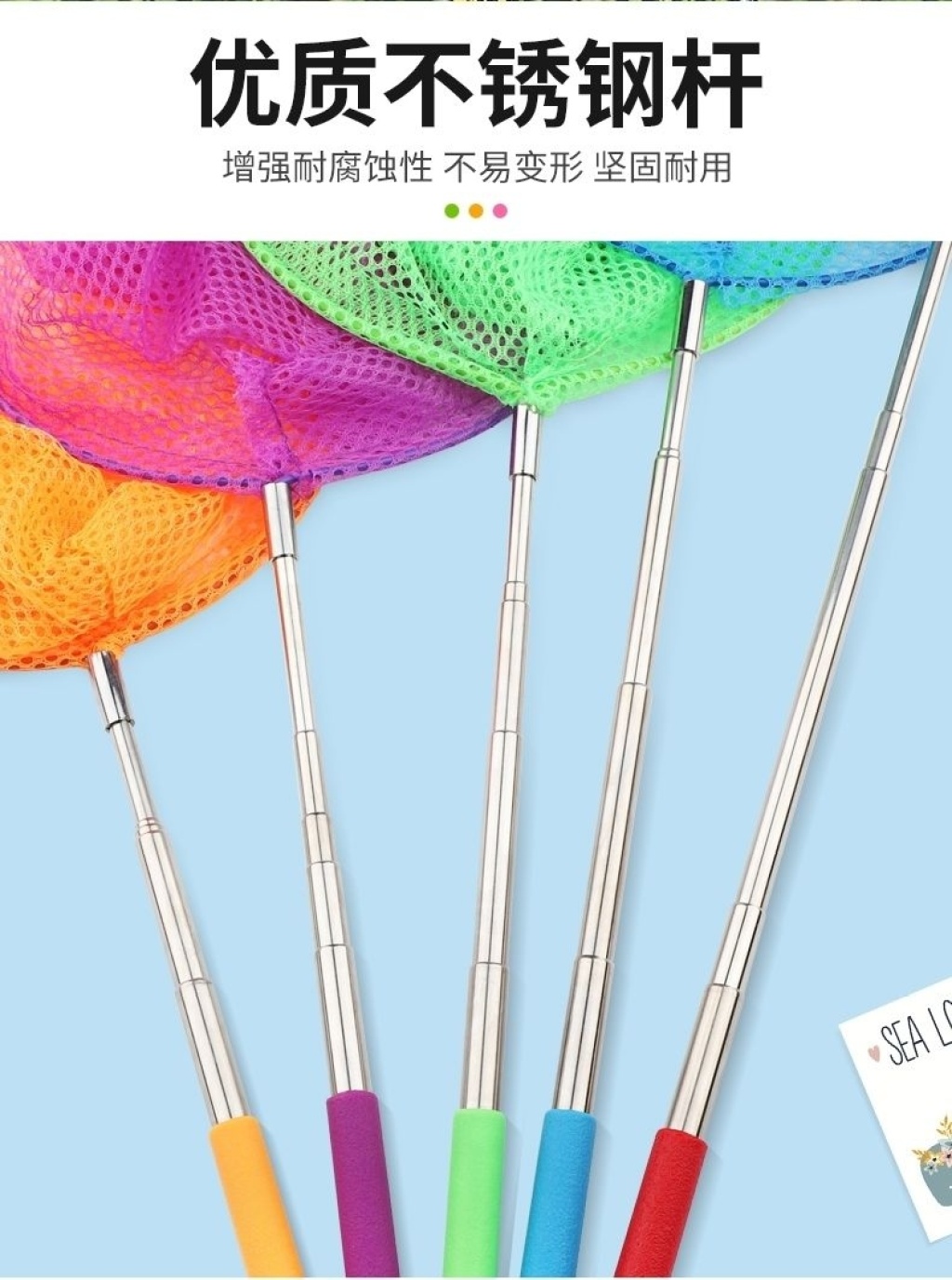 捞鱼网可伸缩蜻蜓网兜捞兜彩色捕蝴蝶网捞捕鱼蝶虫网户外玩具