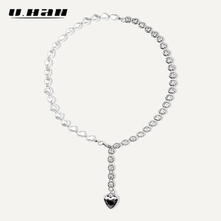 U优饰品 韩国网红博主同款时尚彩色串珠爱心锁骨链糖果色泫雅项链