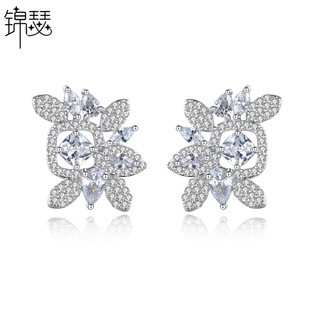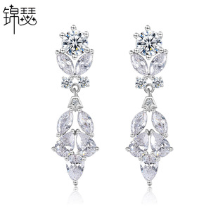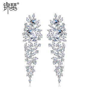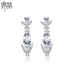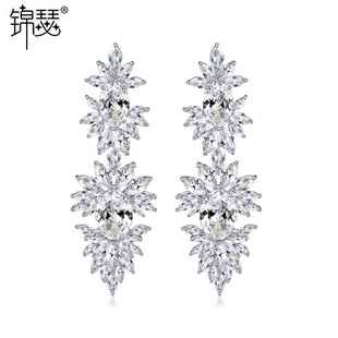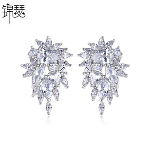 锦瑟 锆石新娘耳钉 真金电镀时尚气质宴会欧美风耳环大气女耳饰品