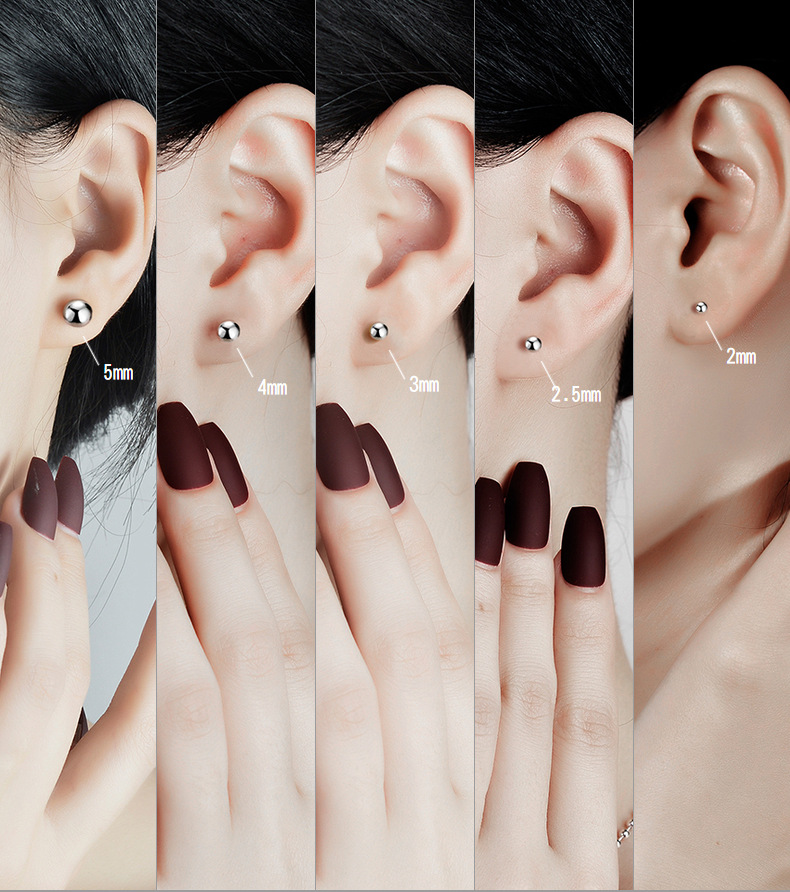 s999纯银豆豆耳钉女 时尚简约小巧耳环 养耳洞圆珠耳棒足银耳饰