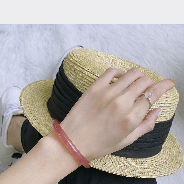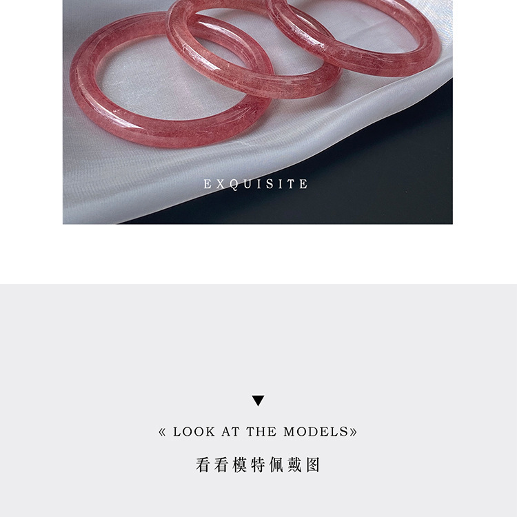 厂家直供天然鸽血红草莓晶圆条手镯 晶体通透时尚简约草莓晶手镯