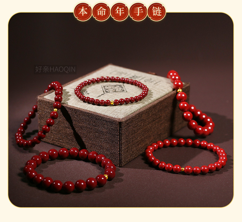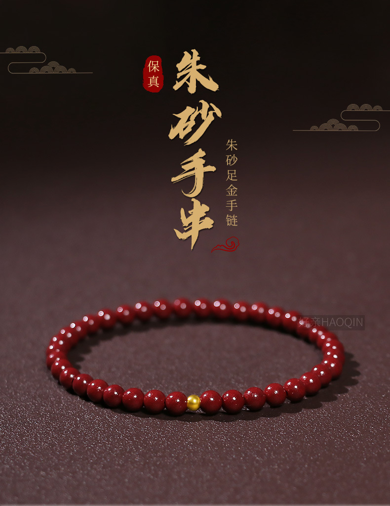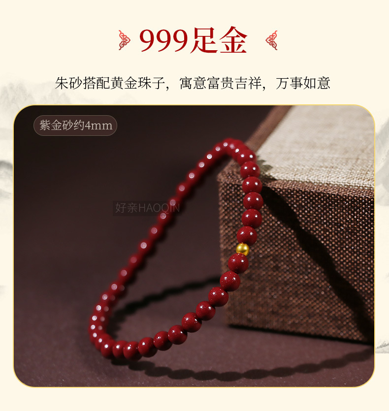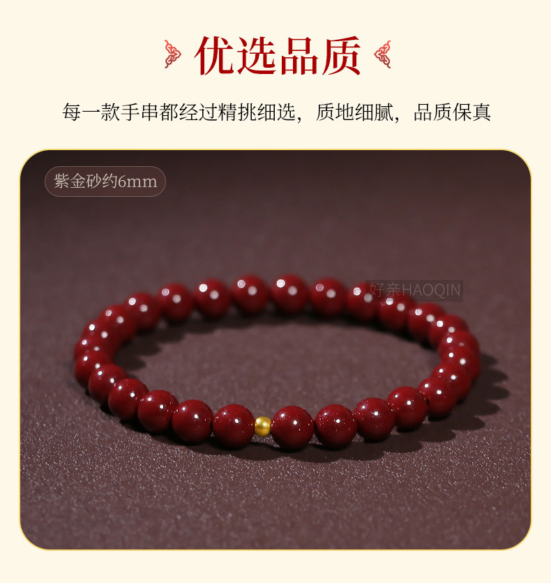朱砂原矿朱砂手串女手链天然本命年紫金砂