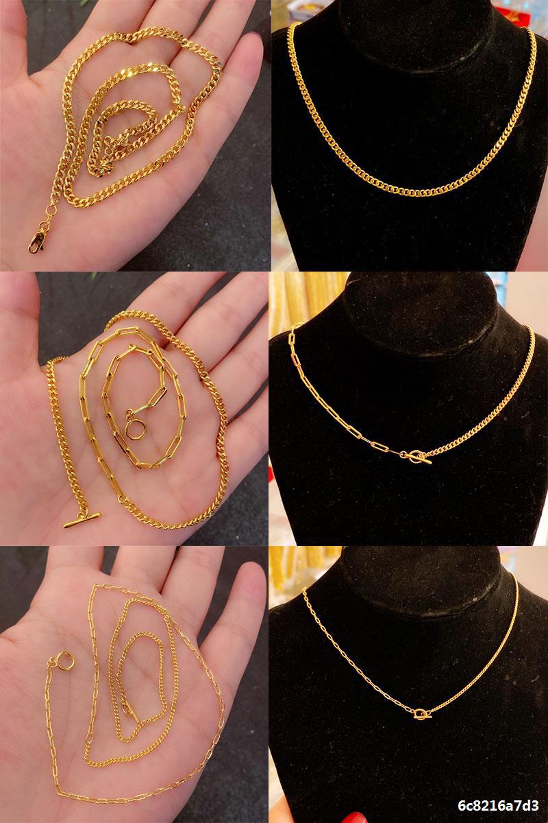 简约沙金款素链项链AB链OT扣ins风仿黄金链防过敏不掉色锁骨链
