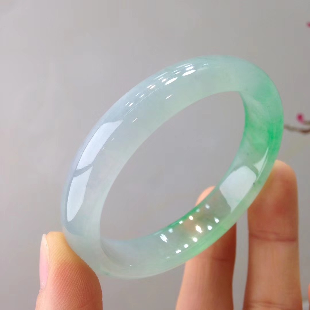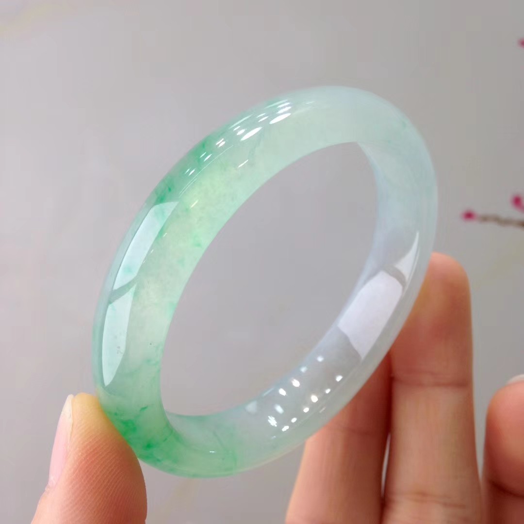 缅甸老坑冰种翡翠手镯贵妃镯正阳绿飘花玉镯子女款生日礼物送礼