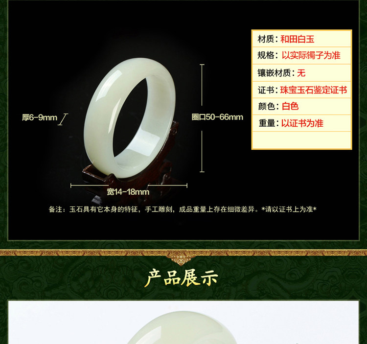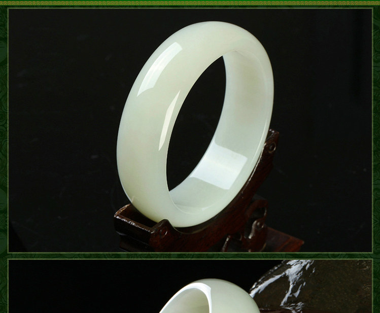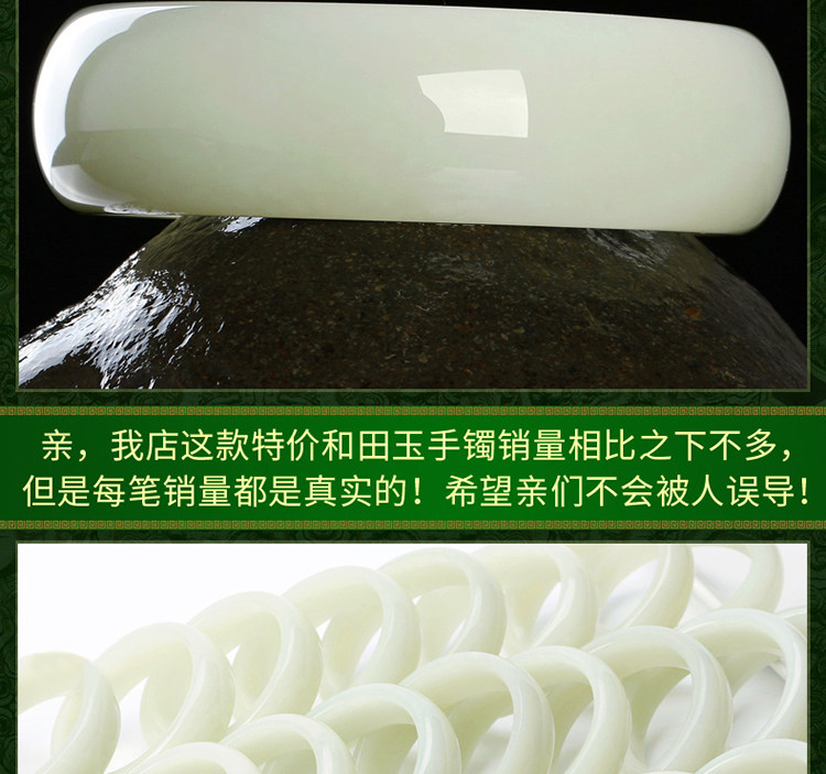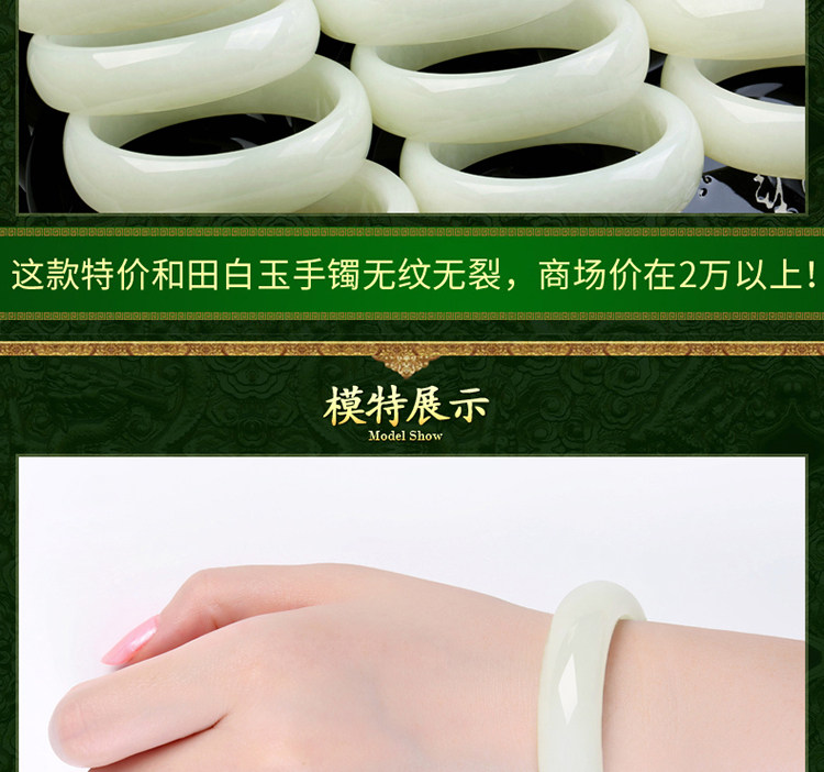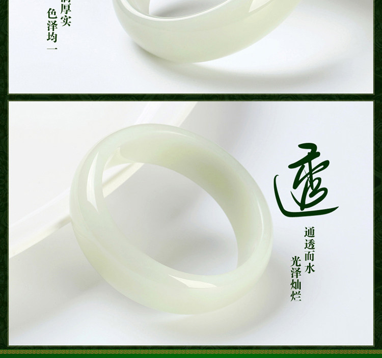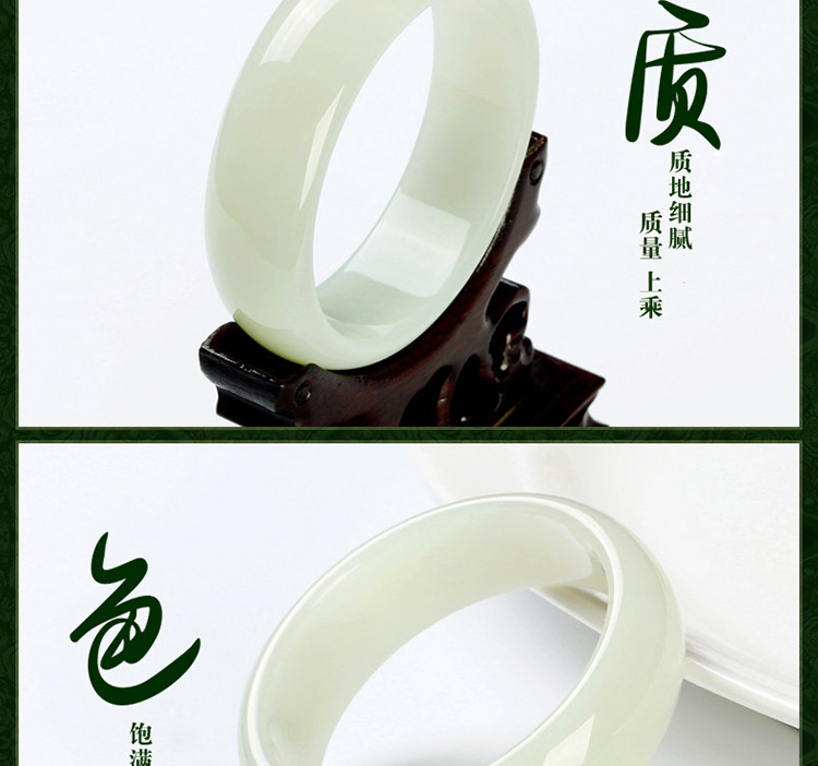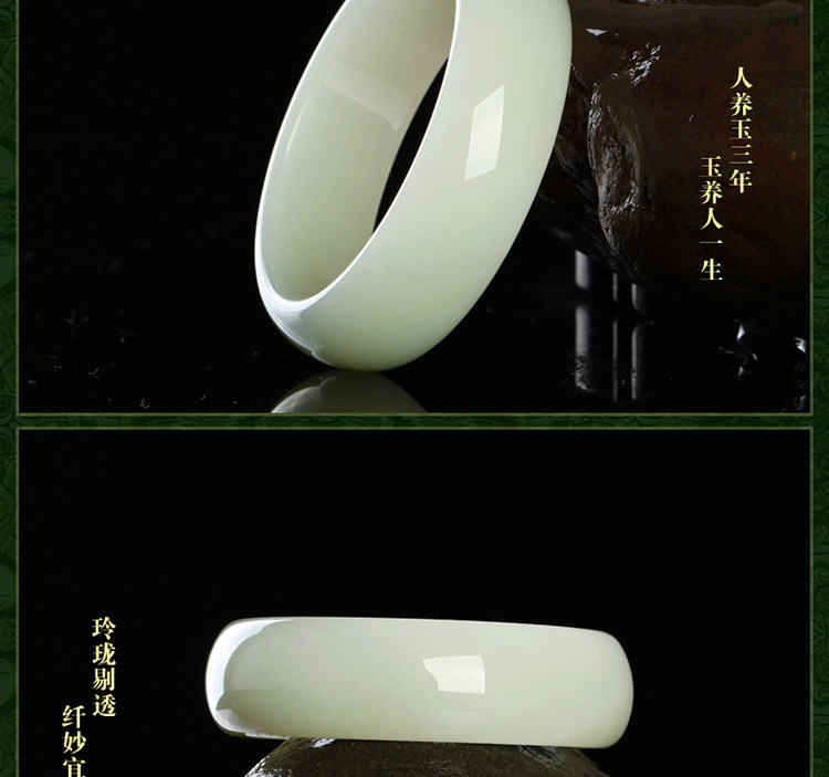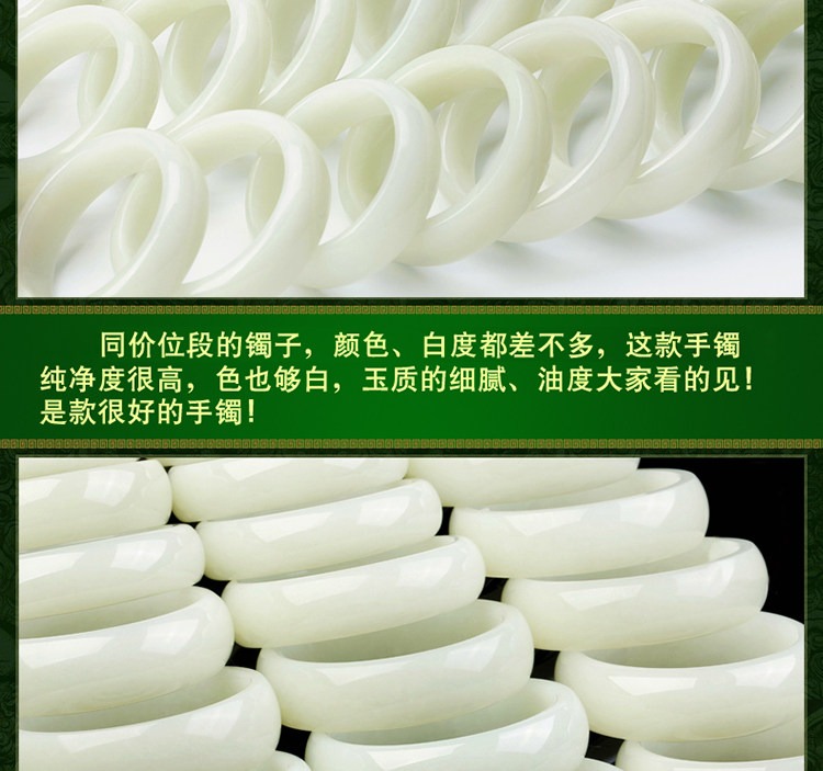 和田白玉手镯 羊脂玉 新疆和田玉 女款加宽玉镯子