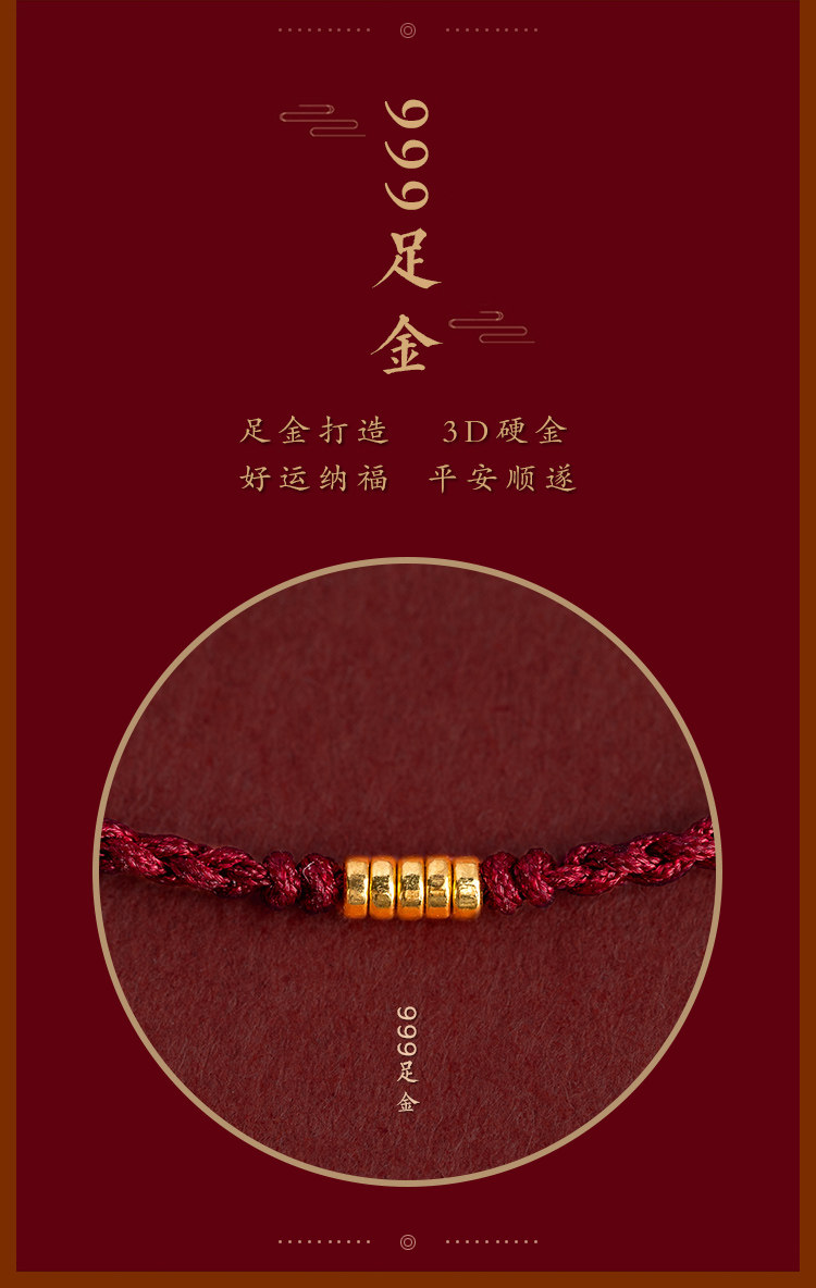 999足金手链女去霉运红绳编织本命年精致简约细款情侣脚绳