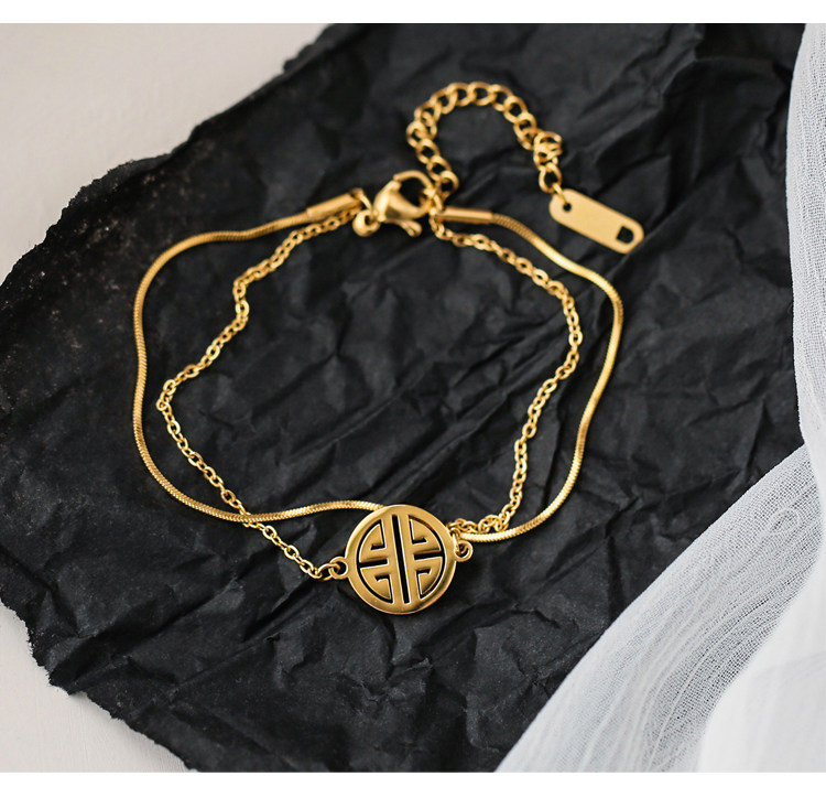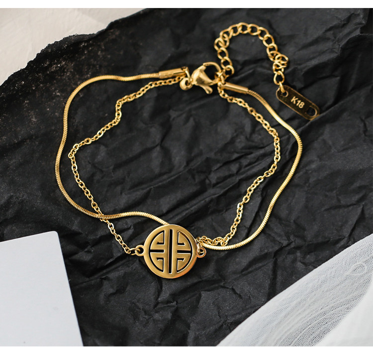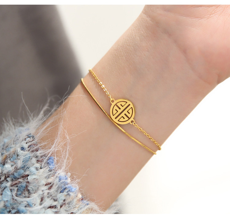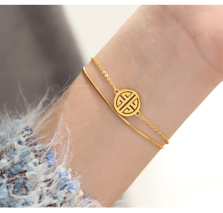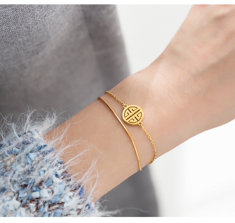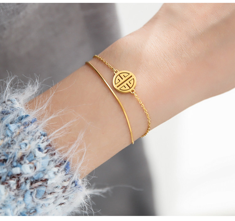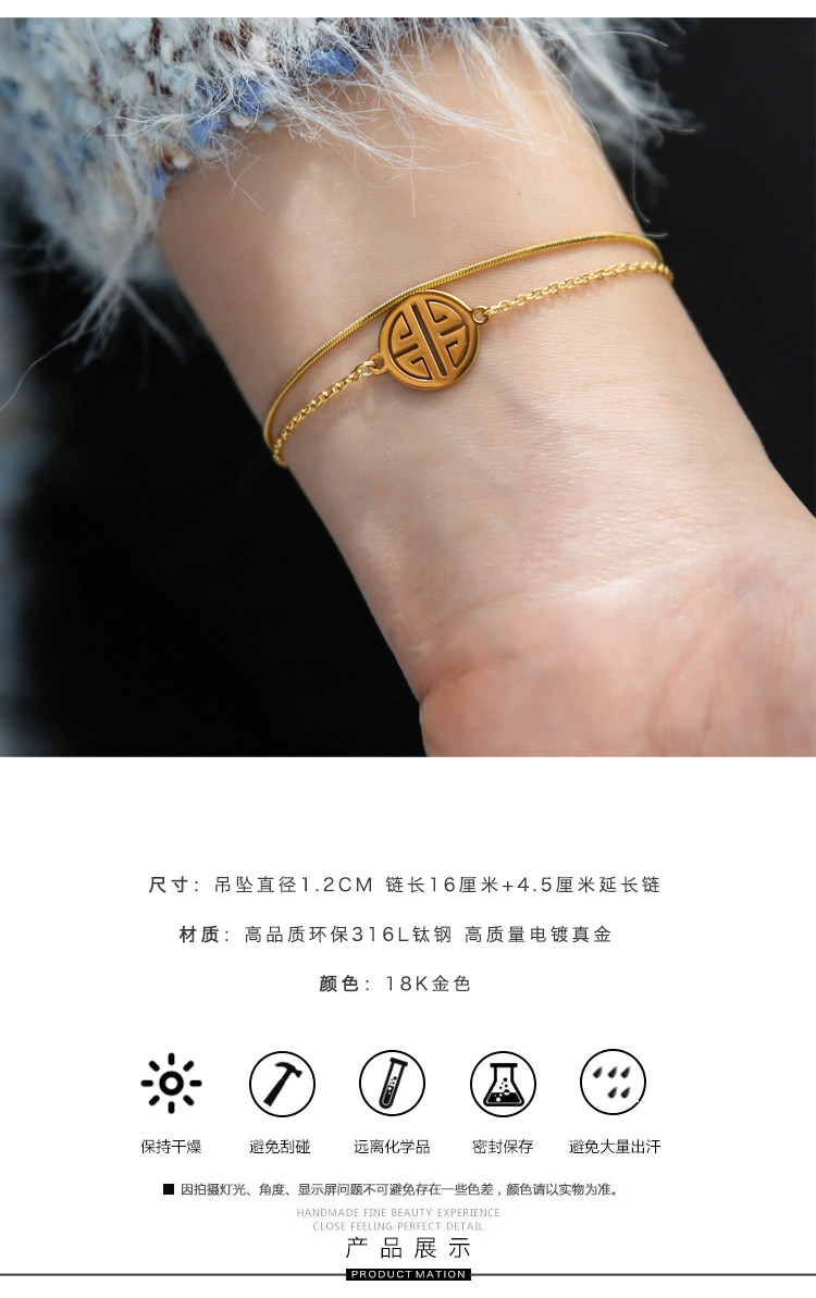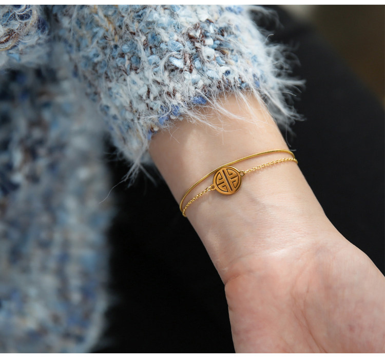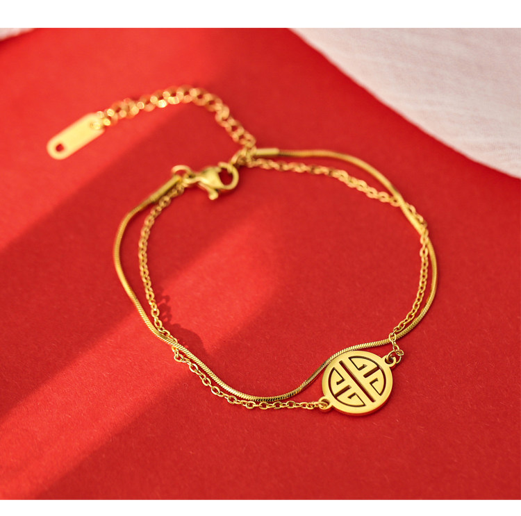 气质幸运双层福牌金色福字复古手链女ins小众设计简约个性不掉色