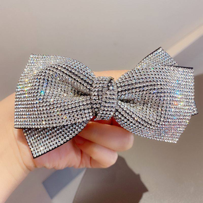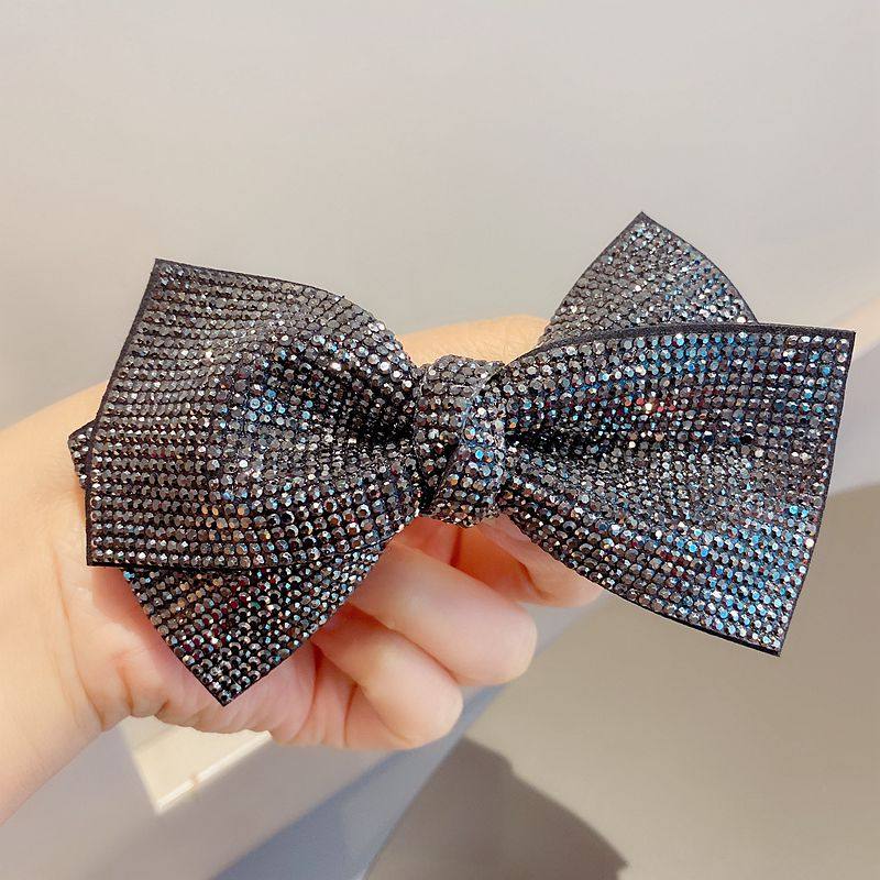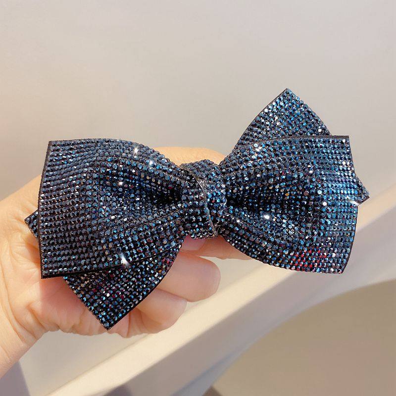 韩版闪亮水钻双层蝴蝶结发夹弹簧夹仙女顶夹后脑勺发卡头饰