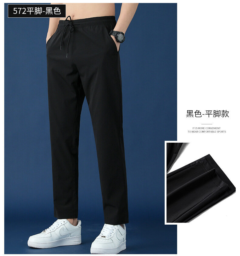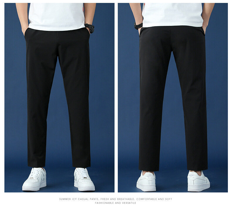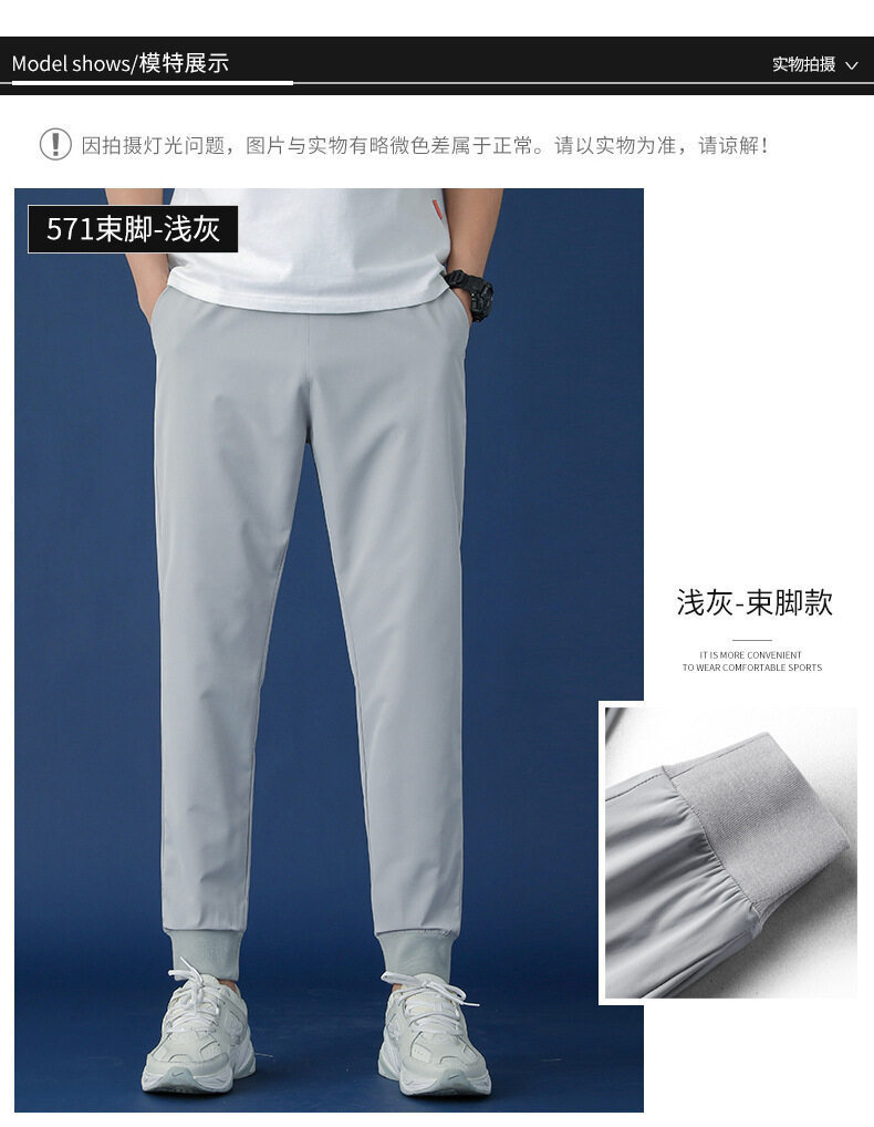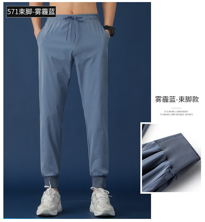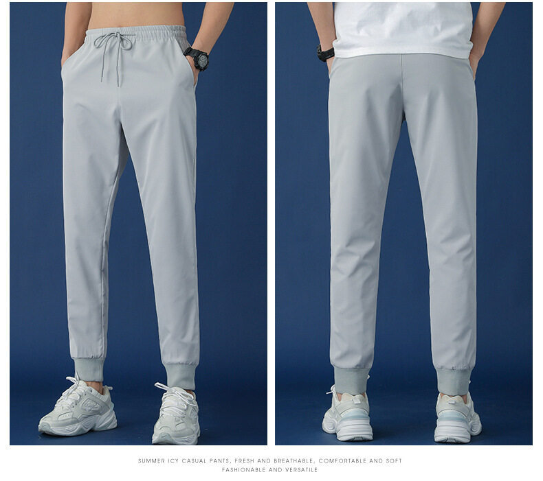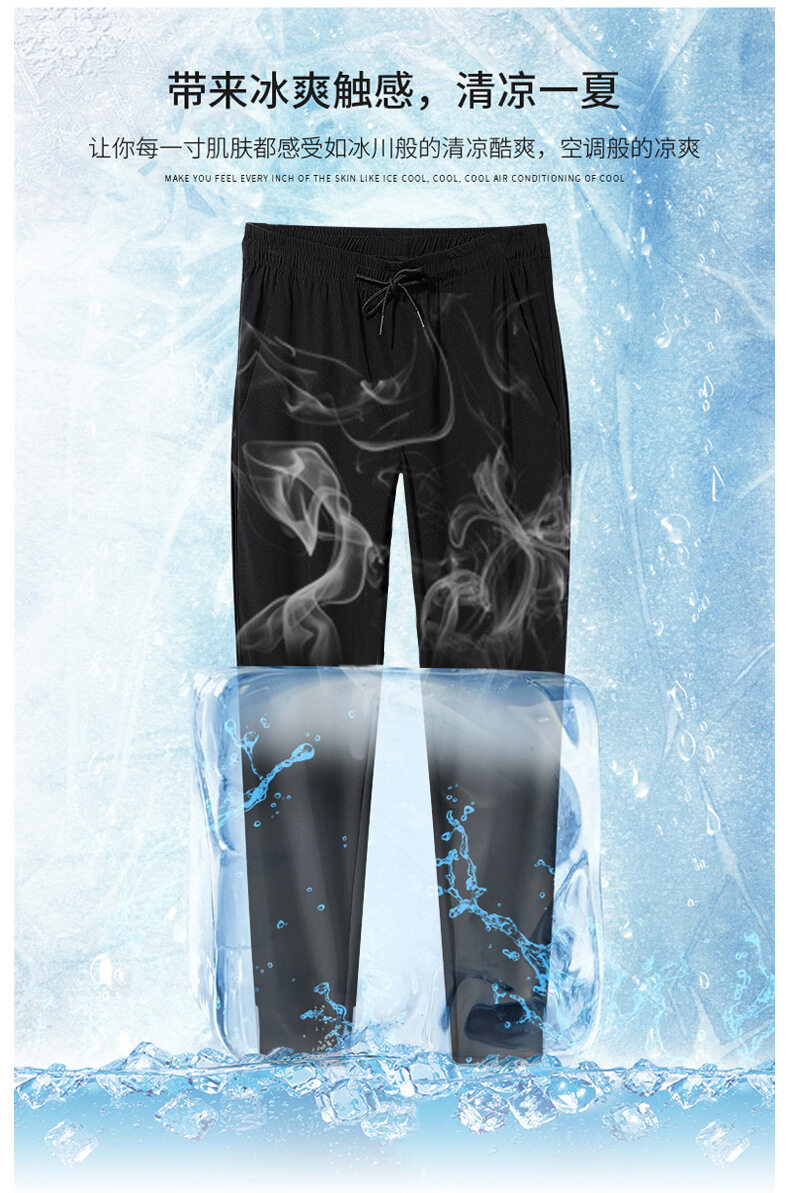 垂感冰丝裤男士休闲运动超薄夏季男裤束脚速干修身弹力空调裤子男