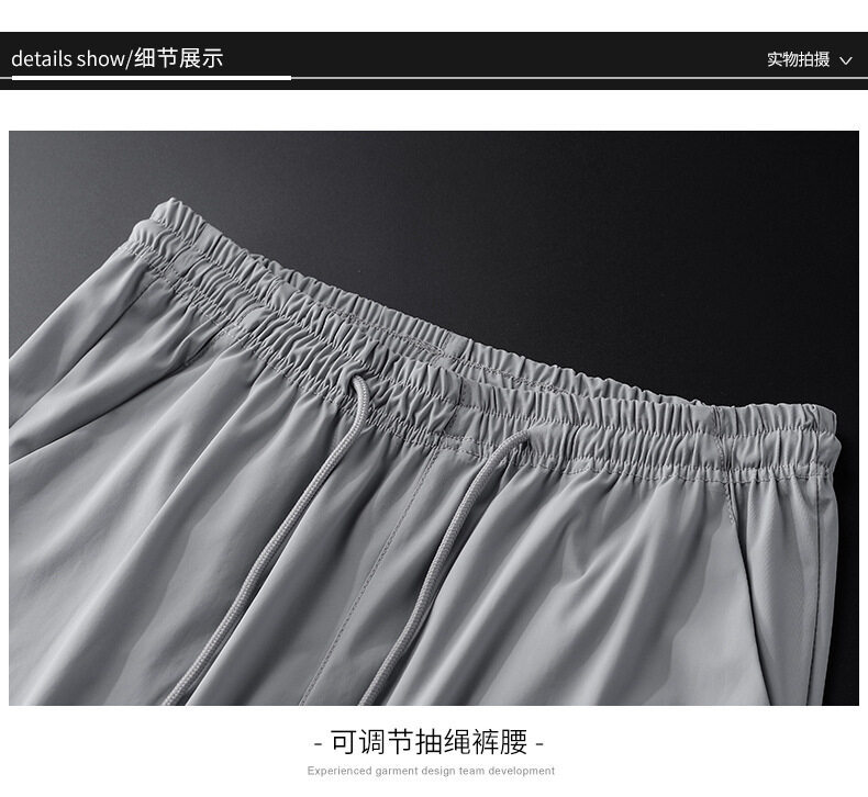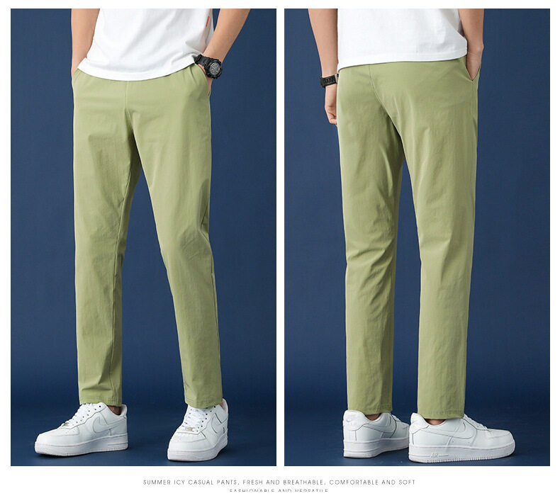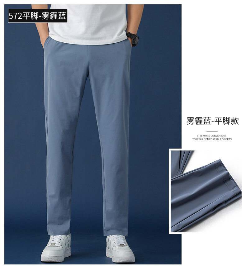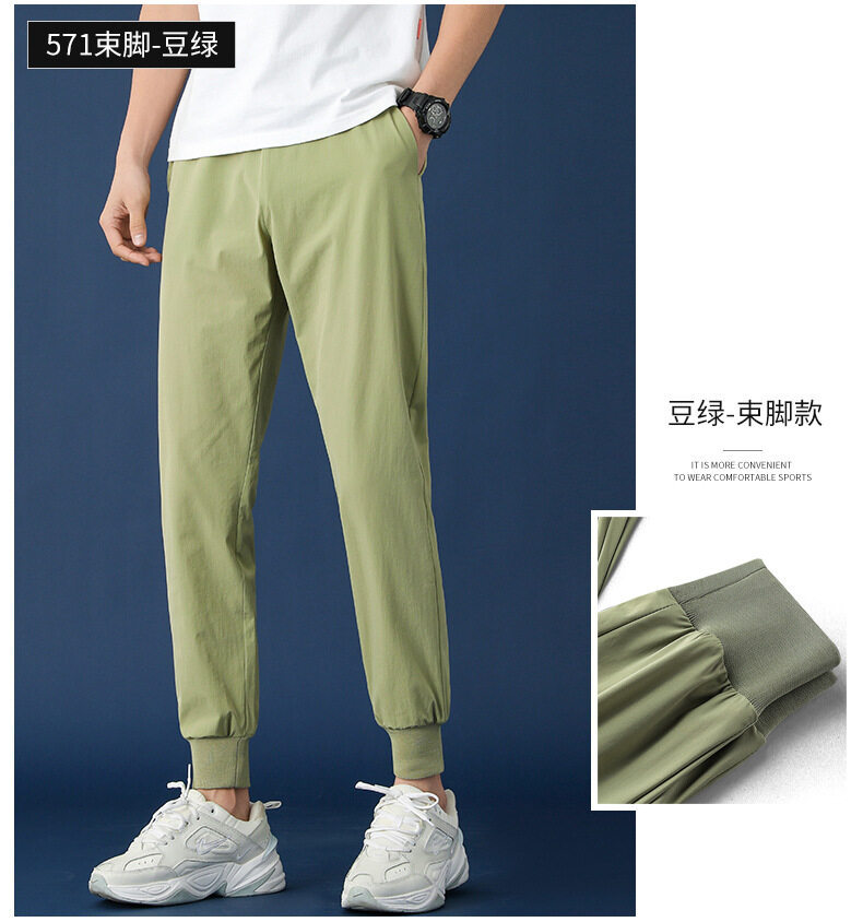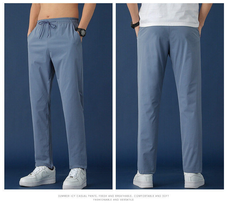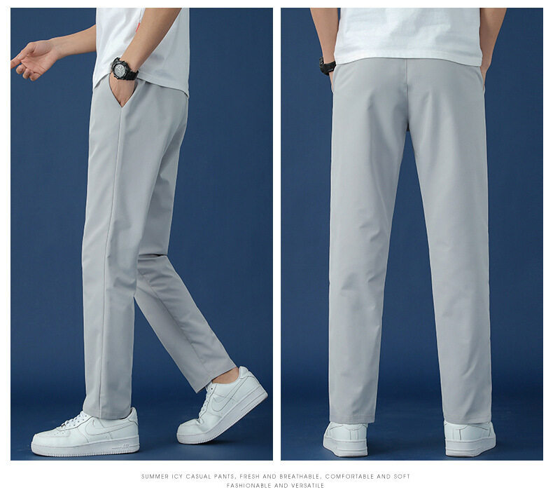 垂感冰丝裤男士休闲运动超薄夏季男裤束脚速干修身弹力空调裤子男