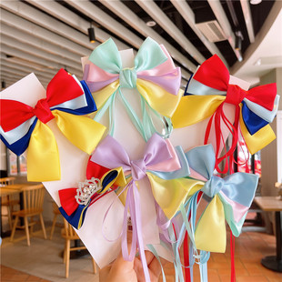 夏季网纱飘带编发发饰艾莎长尾蝴蝶结发夹儿童马尾辫发卡头饰批发