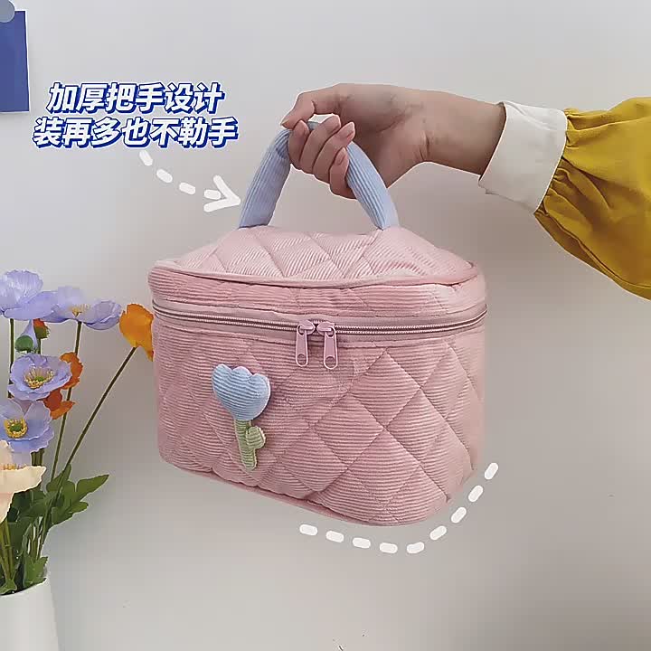 跨境亚马逊ins郁金香化妆包灯芯绒大容量洗漱包手提化妆品收纳包